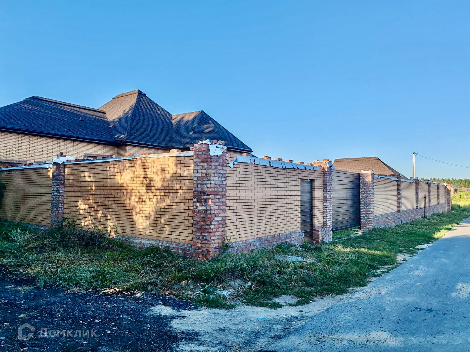Земельный участок 11 сот. Вся территория обнесена кирпичным забором высотой от 2,5 до 2,7 м. (имеет 2-е подкатных ворот шириной 3,8 и 5,3 м).