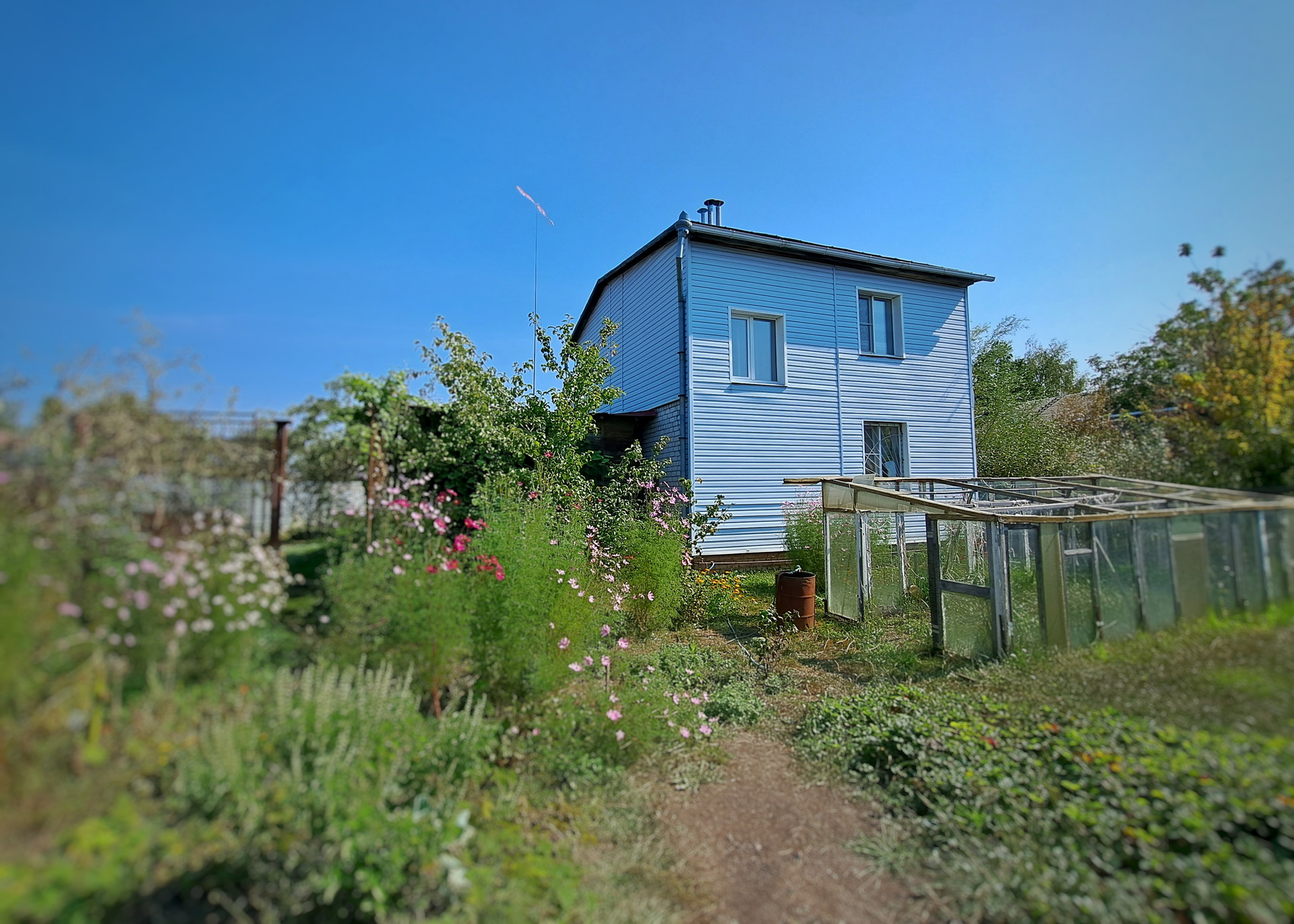 Участок ровный.  2 теплицы. Фруктовые деревья. Навес на дворе.
