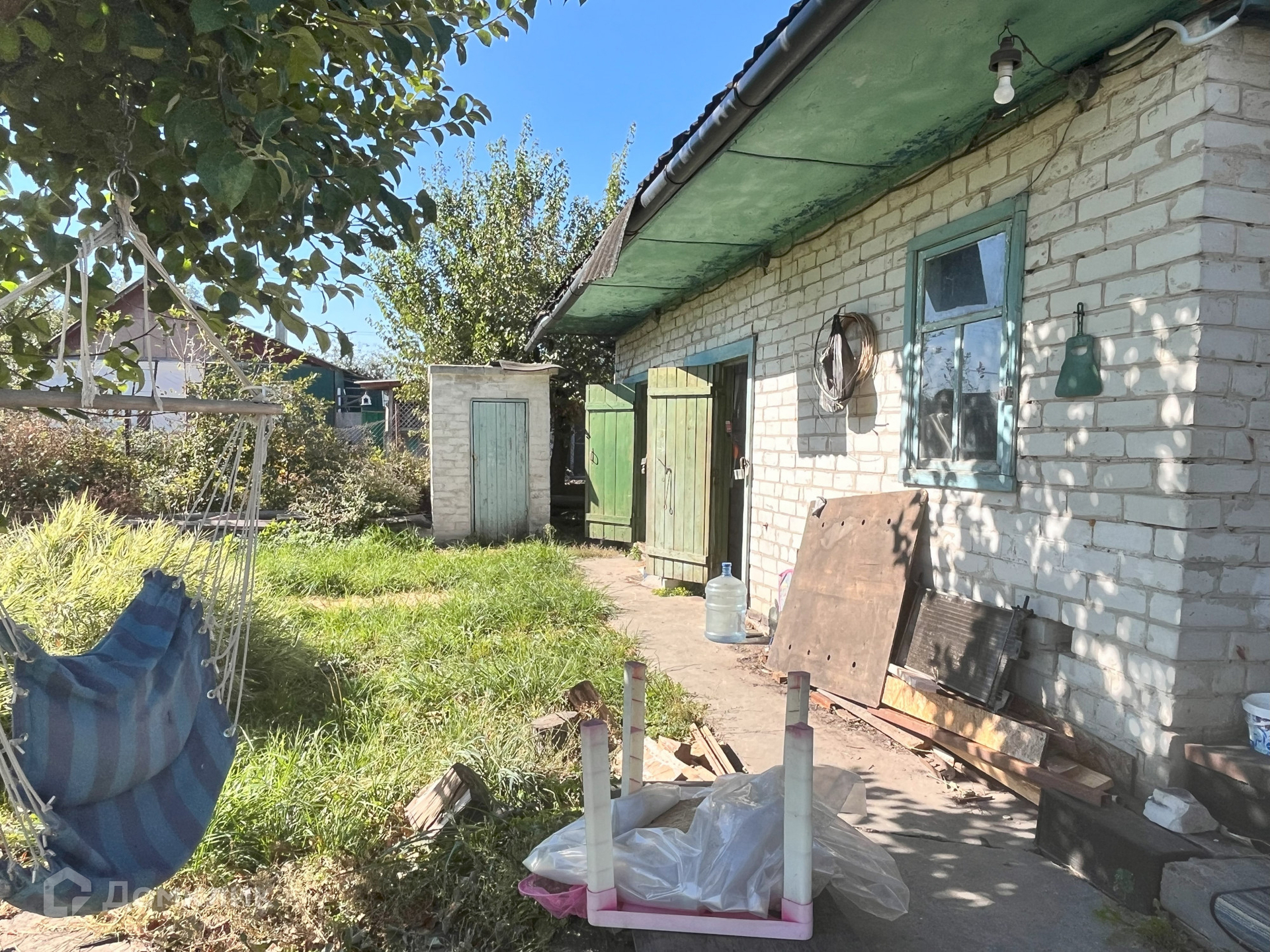 Во дворе имеются надворные постройки в виде трех подсобных помещений и участок с плодовыми деревьями.