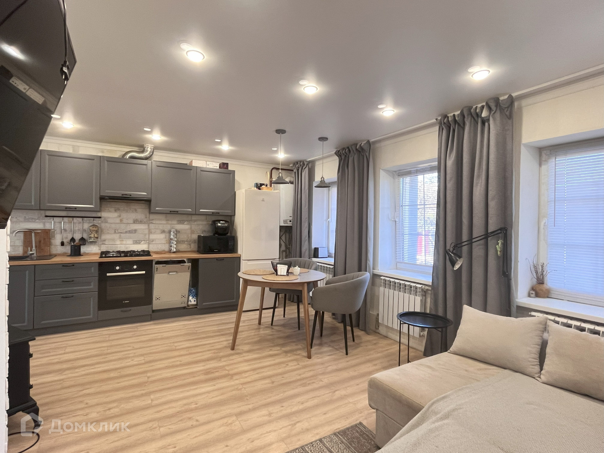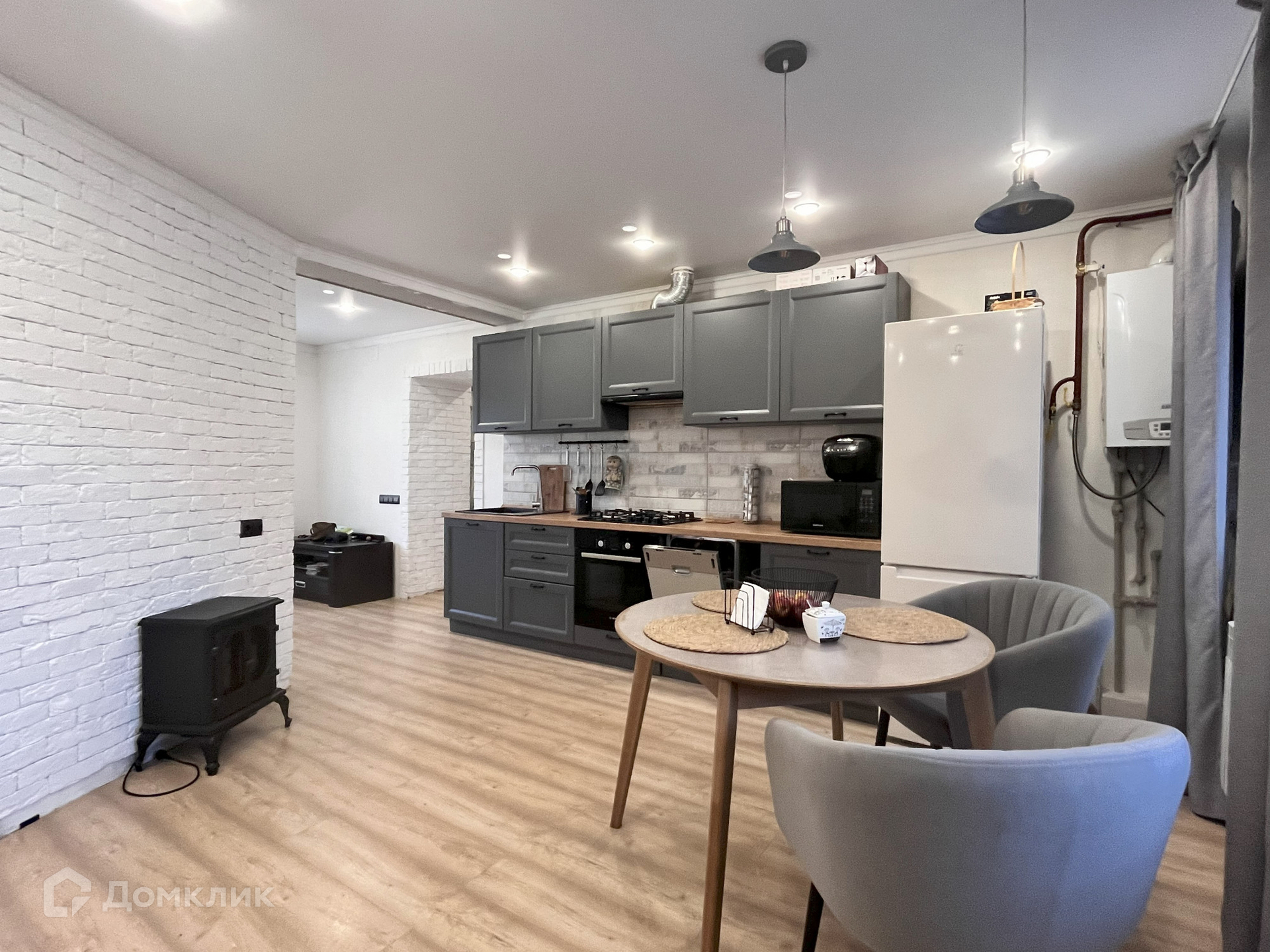 На первом этаже выполнен качественный ремонт. В санузлах теплый пол. Одним из главных преимуществ дома является большая гостиная, идеально подходящая для семейных вечеринок, уютных вечеров и приема гостей. Встроенная кухня (без техники) входит в стоимость дома.