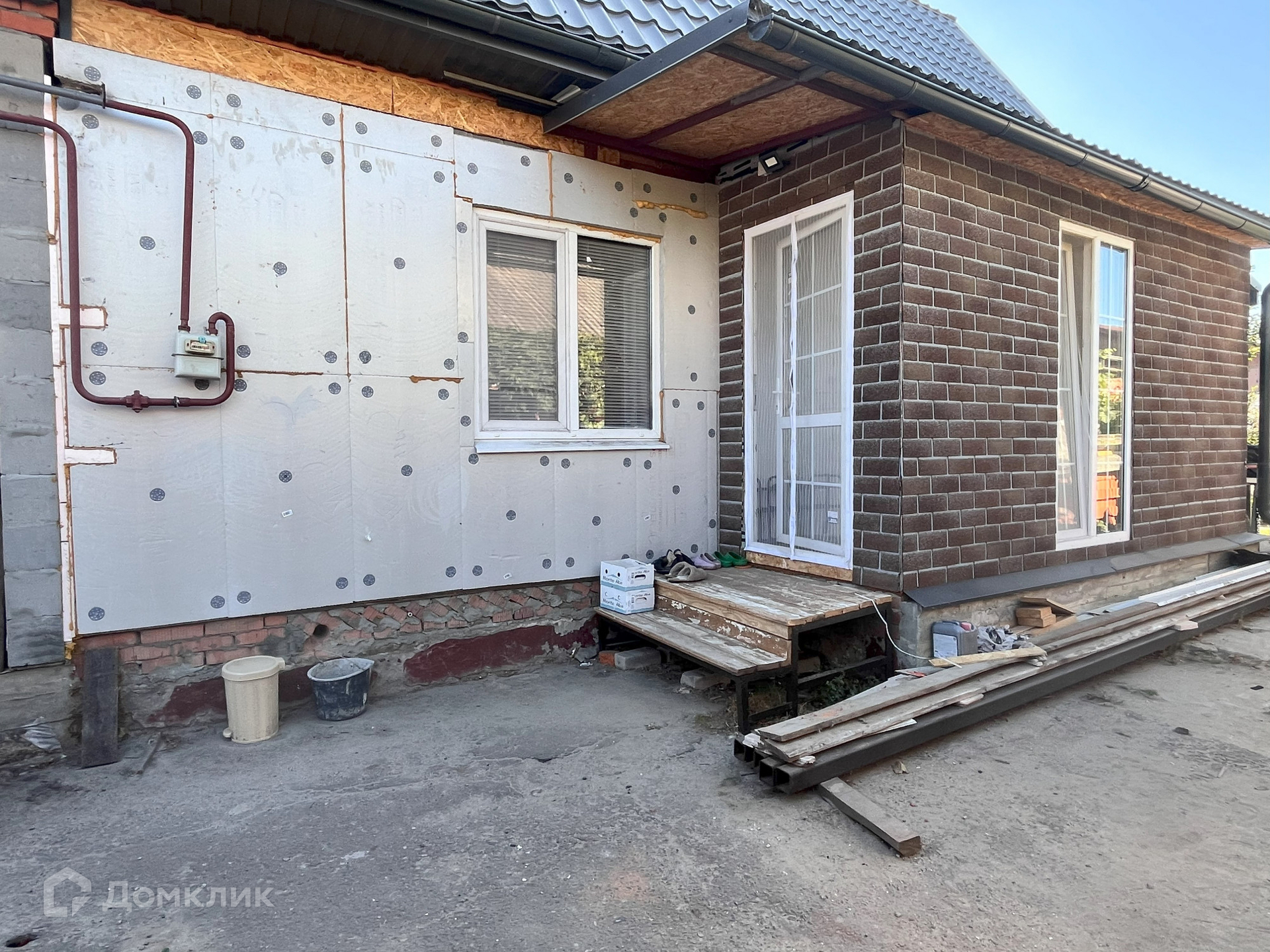 По всему периметру дома новый фундамент из бетона М 400 на граните. Стены дома проложены утеплителем и выложены блоком. Толщена стен 1-го этажа 60 см. Кладка ровная под легкую внешнюю штукатурку (требуется только выполнить облицовку фасада). Возведен мансардный этаж. В 2022 году дом покрыт новой крышей из металлочерепицы премиум качества.  Для облицовки фронтонов мансардного этажа закуплена фасадная плитка Дёке (продается вместе с домом). Произведена новая врезка газа с заменой всей системы газификации дома (документы имеются), полностью заменен система электроснабжения и проводка внутри дома, заменена вся система водоснабжения и канализации (две раздельных сливных ямы). Полностью заменены полы. На мансардный этаж подведены все вышеперечисленные коммуникации и частично выполнен внутренний ремонт. Установлены межкомнатные перегородки (материал для достройки продается вместе с домом).