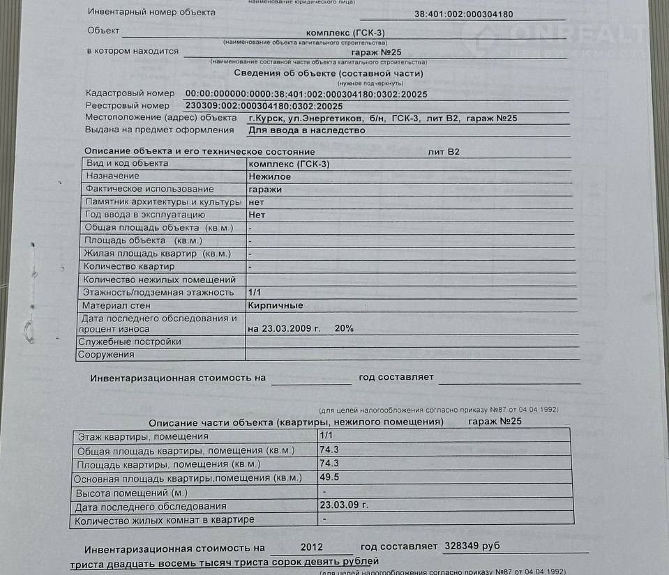 Стоимость недвижимости: