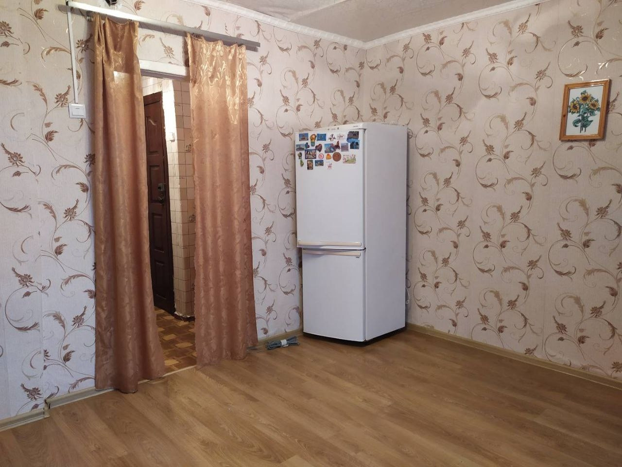 Продается уютная комната в общежитии. Комната формата квартиры студии. Раздельный санузел непосредственно в квартире. В коридоре помещается верхний и нижний стол кухонного гарнитура. В ванной помещается стиральная машина с верхней загрузкой.