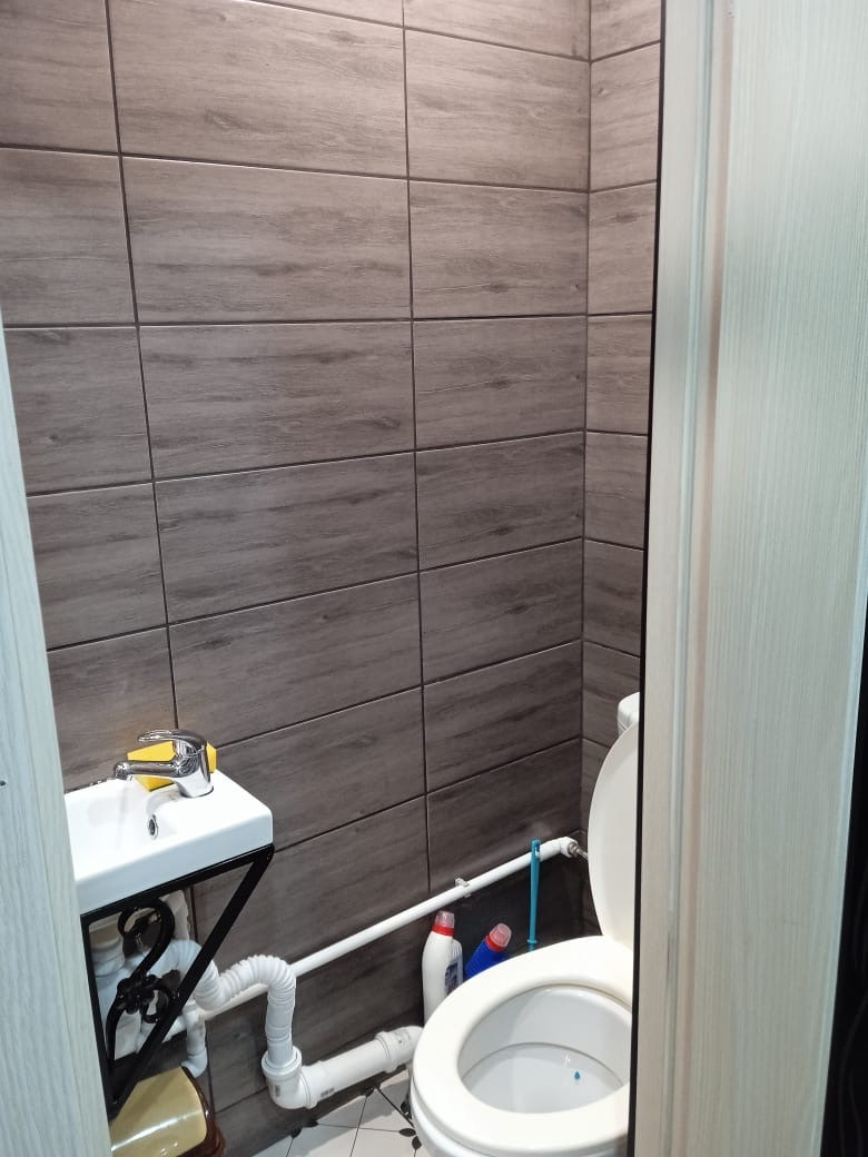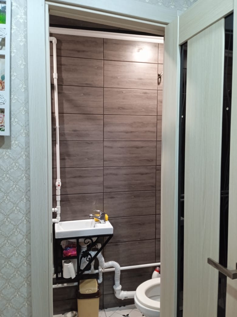 2 жилых комнаты, свой душ и туалет. Санузел в кафеле. Сделан очень хороший ремонт. Выровнены стены и полы. Есть балкон. Есть возможность сделать кухню.