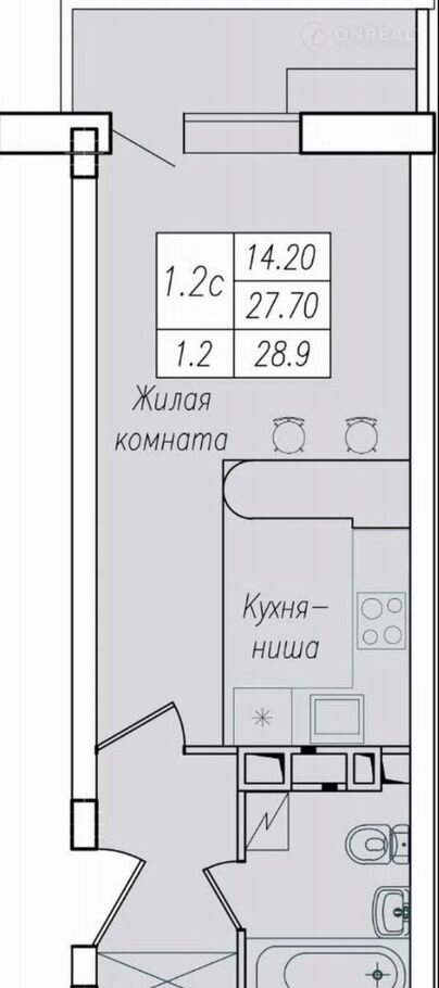 Общая площадь 28.9 м2