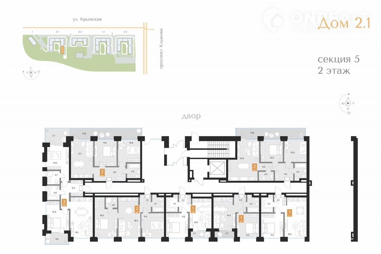 2-комнатная квартира, 56.6 м2, этаж 2 / 16, на продажу в Курске