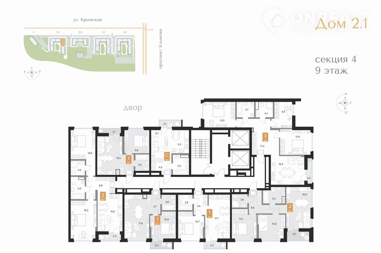 2-комнатная квартира, 65.2 м2, этаж 9 / 16, на продажу в Курске