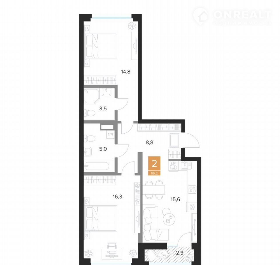 Общая площадь 65.2 м2