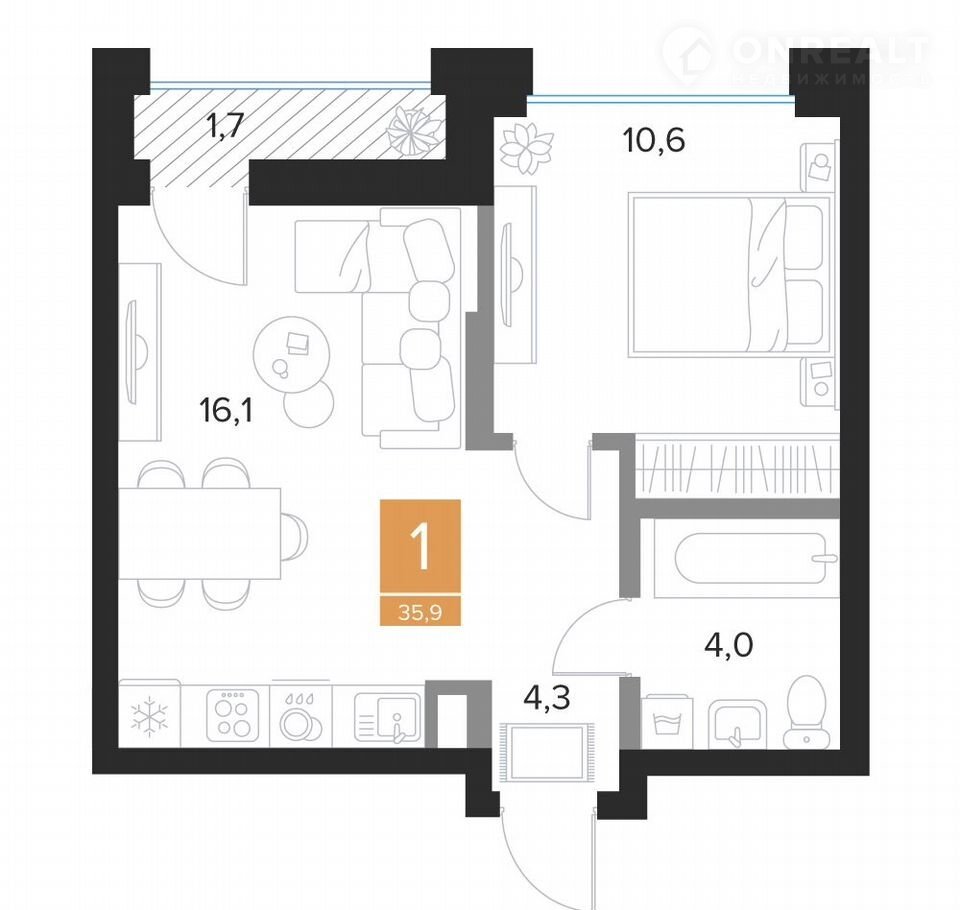 Общая площадь 35.9 м2