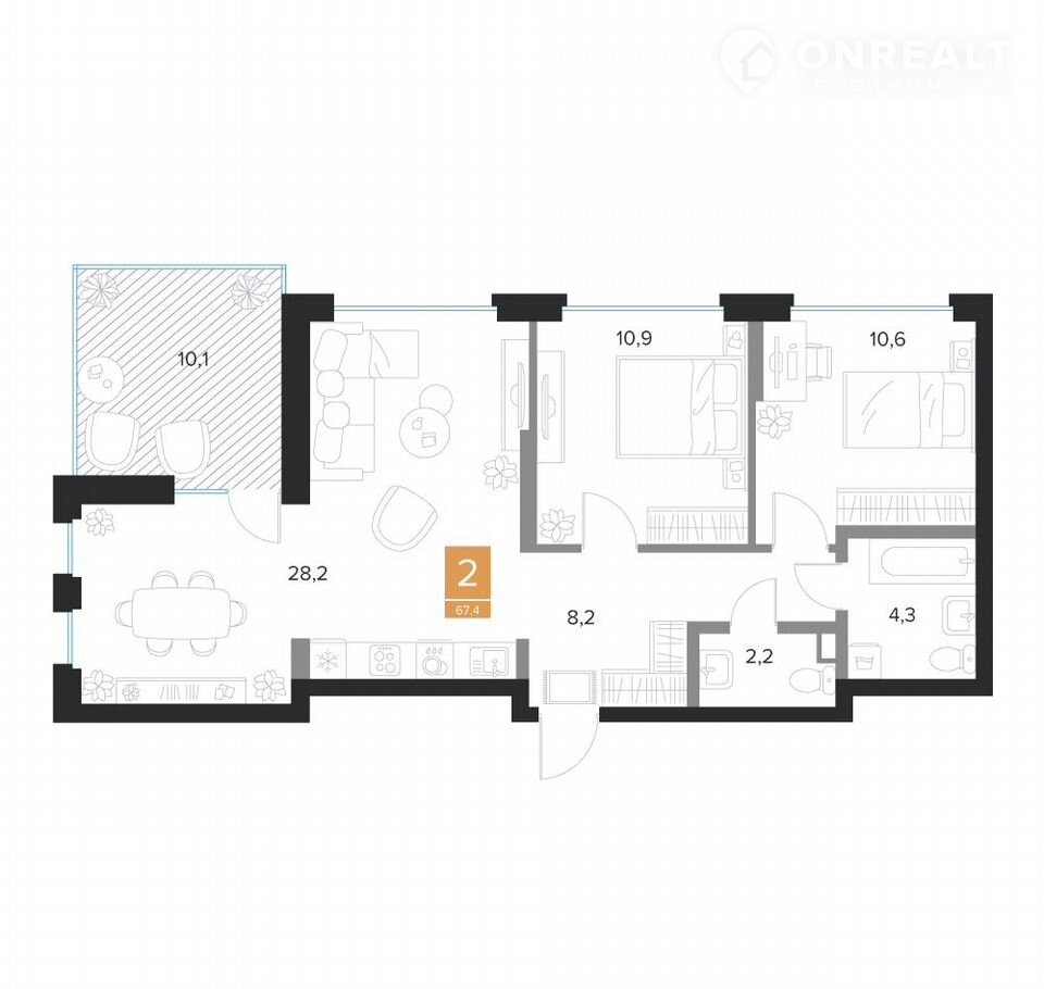 Общая площадь 67.4 м2