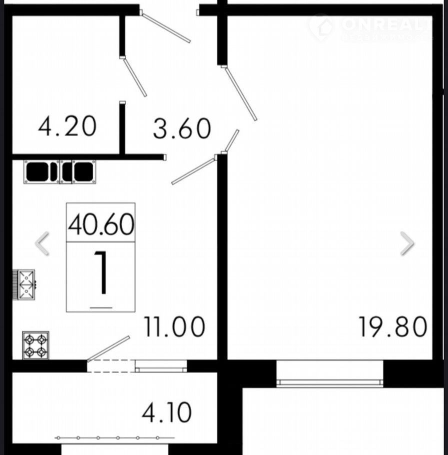 1-комнатная квартира, 40.6 м2, этаж 6 / 9, на продажу в Курске, улица Генерала Григорова, 34
