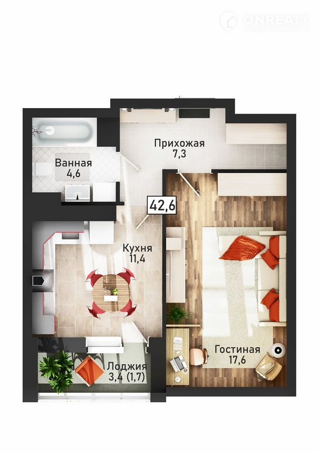 Общая площадь 41.8 м2