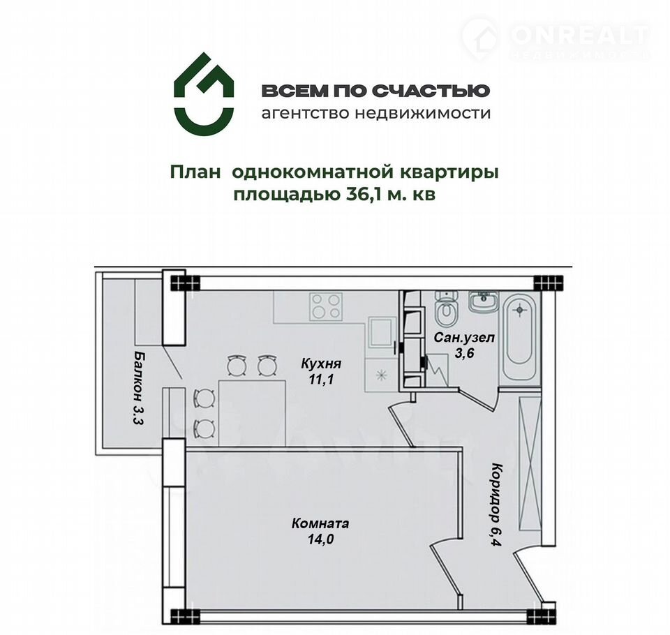 плoщaдь 35,6 кв.м