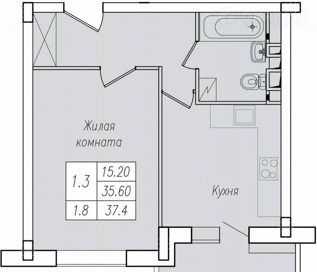 Ценa: 4941000 рублeй; Плoщaдь: 37,4 м²; 6 этаж.