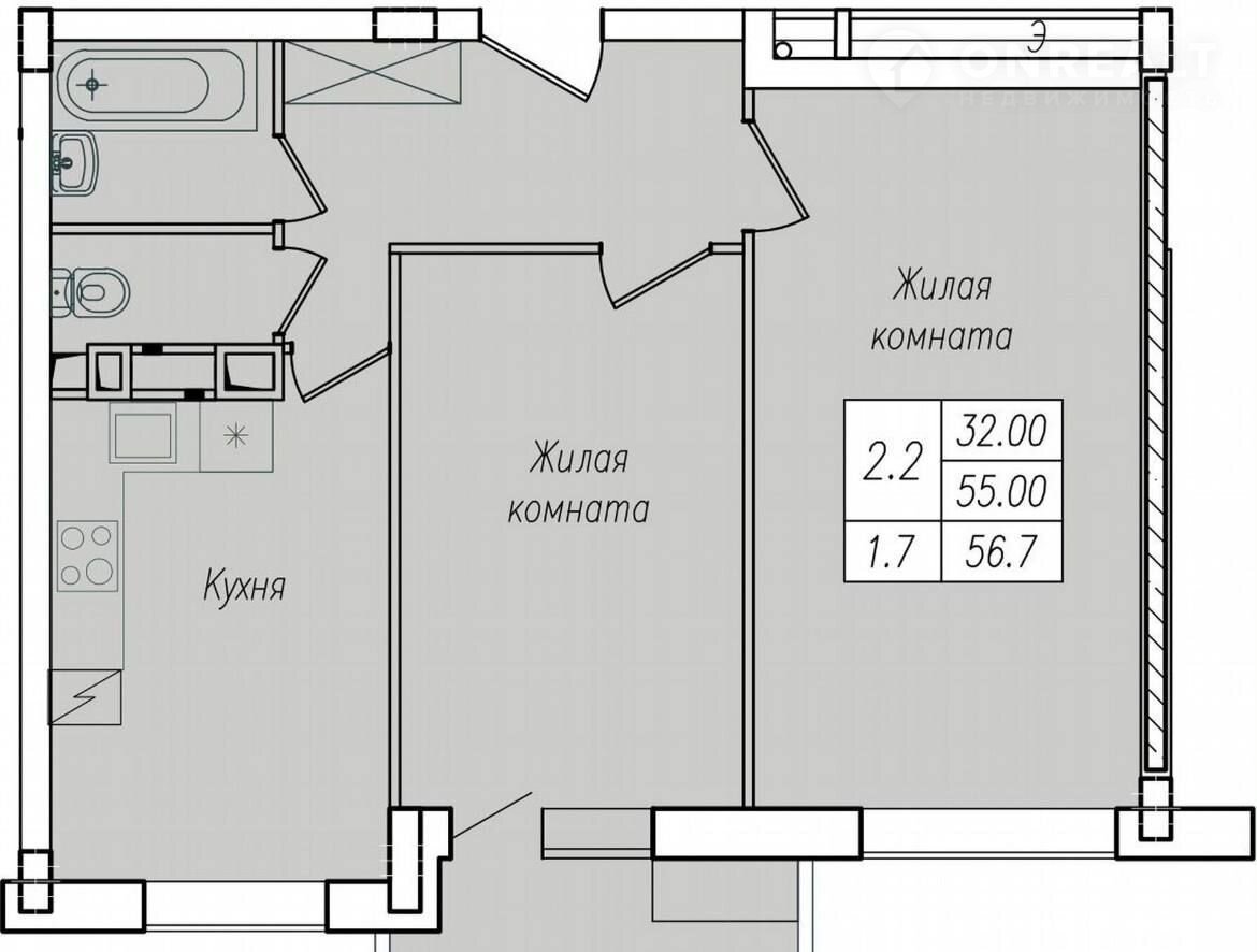 Общая площадь 56.7 м2