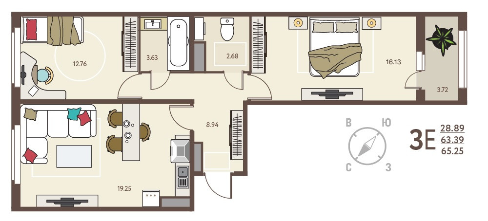 Общая площадь 65.25 м2