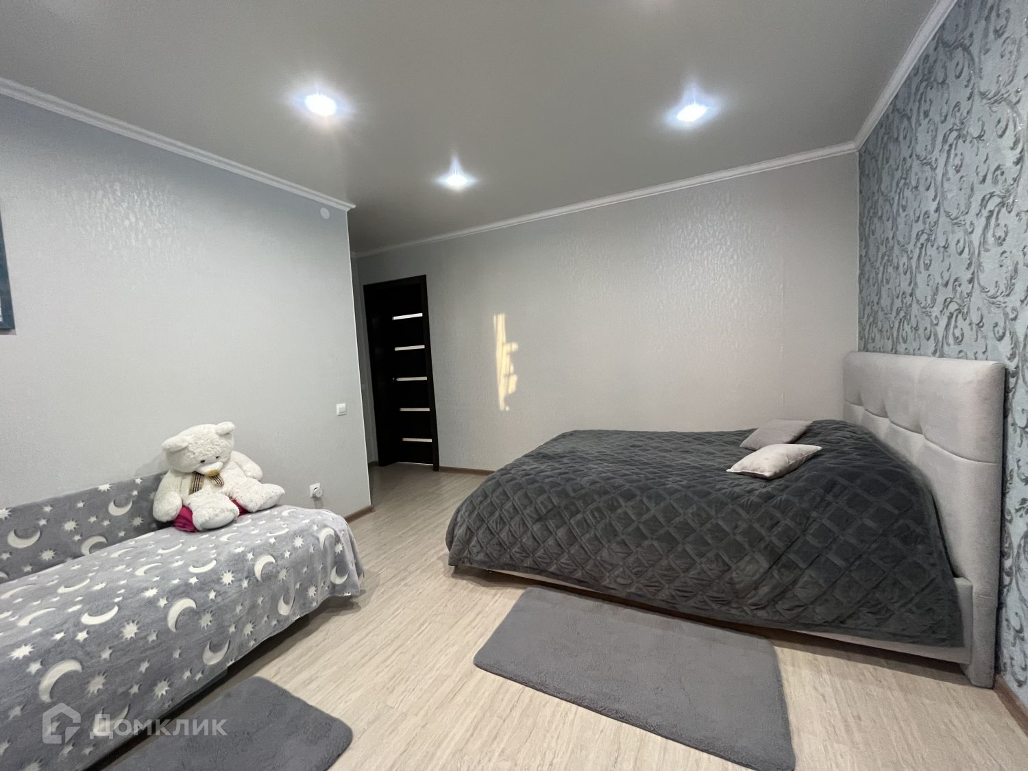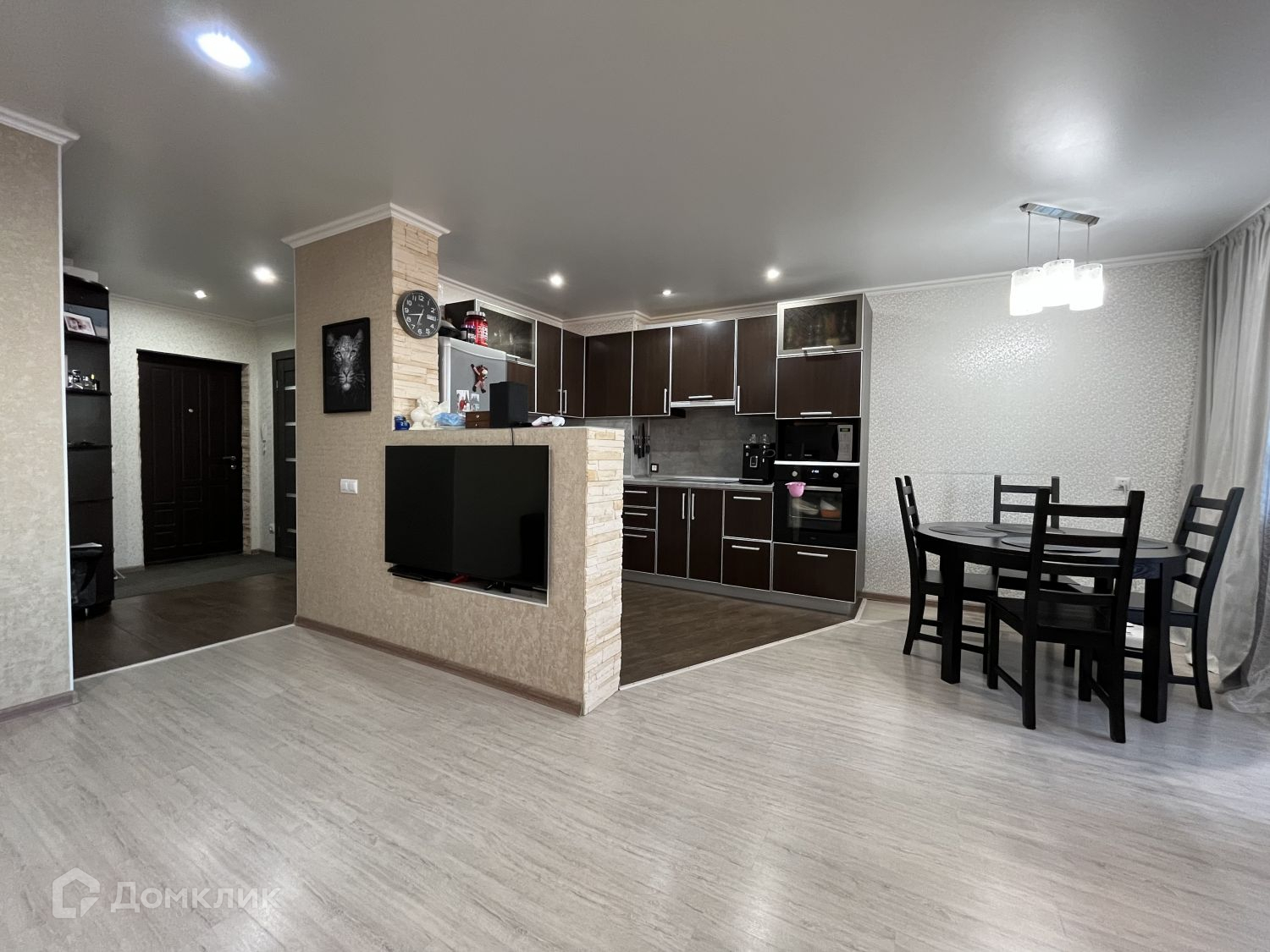 Выполнен современный ремонт с использованием качественных материалов. Окна ПВХ, натяжные потолки с точечными светильниками, ламинат и керамогранит, кафель в санузле, теплый пол в лоджии.