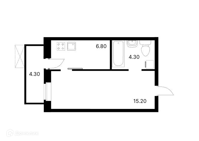Общая площадь 30.6 м2