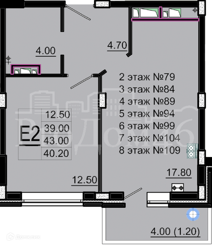 Общая площадь 43 м2