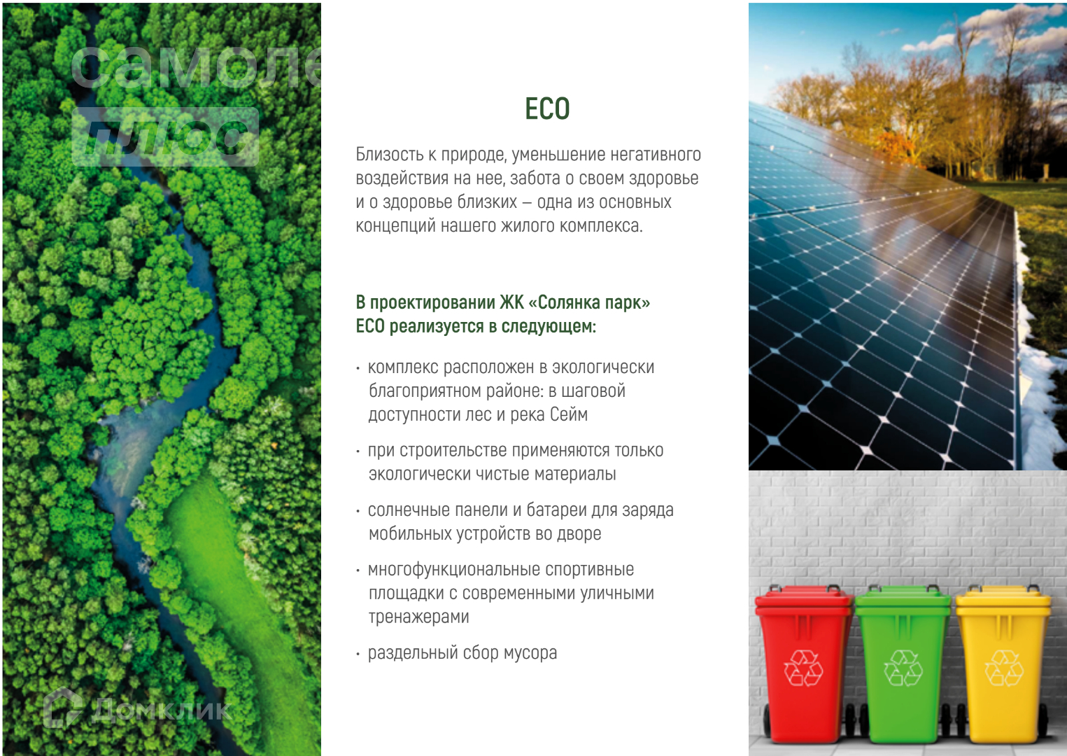 Несмотря на экологичность проекта вся инфраструктура рядом: остановка общественного транспорта,детские сады – №37, 88, 97, 115,школы – №3, 10, 20, 39, 46, СКК, Лента и многое другое.