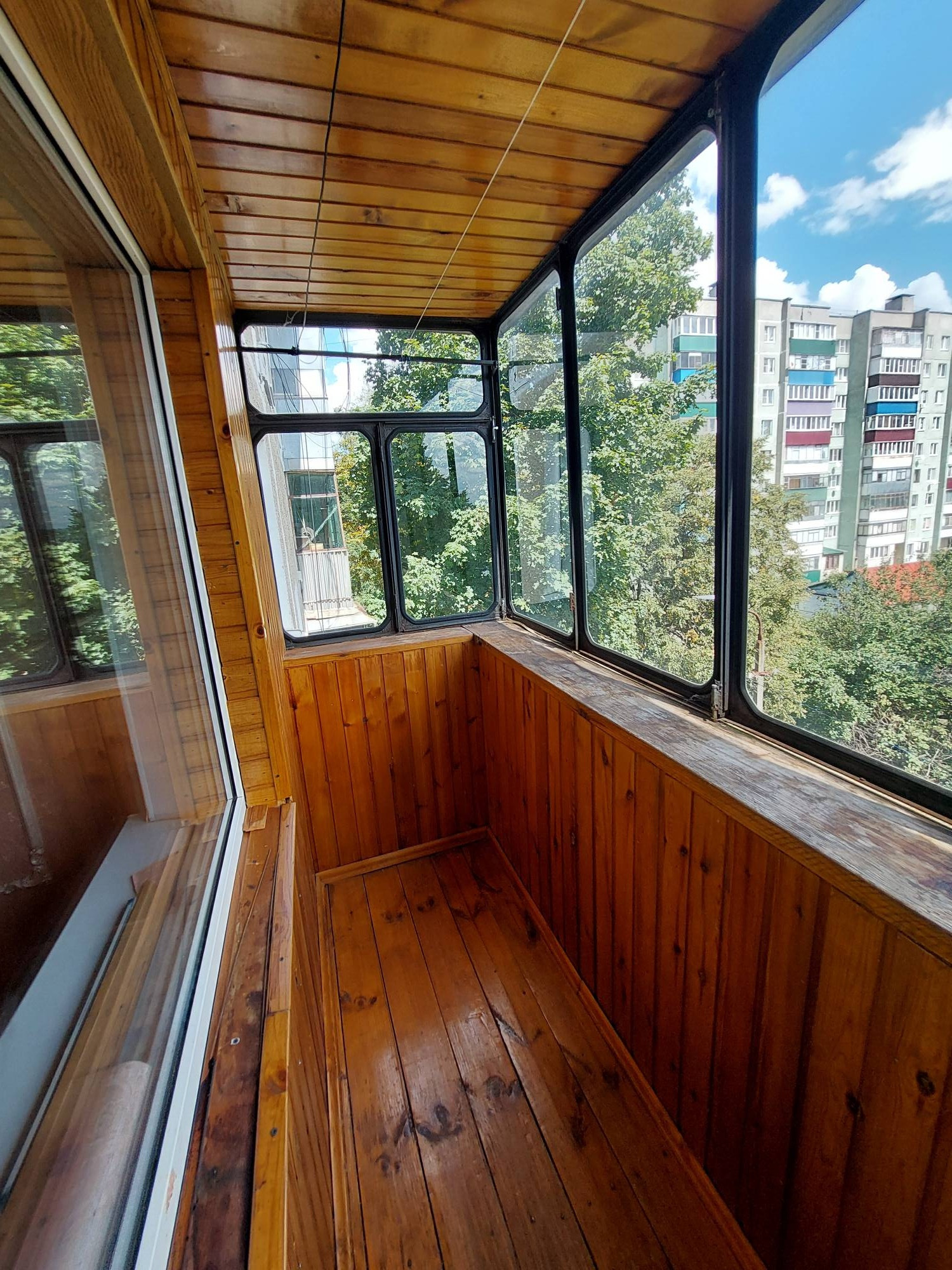 Квартира площадью 47,4кв.м., комнаты изолированные, комнаты :15,8кв.м. и 17,2кв.м. Имеется гардеробная. В одной из комнат выход на балкон. Балкон застеклен и обшит вагонкой.