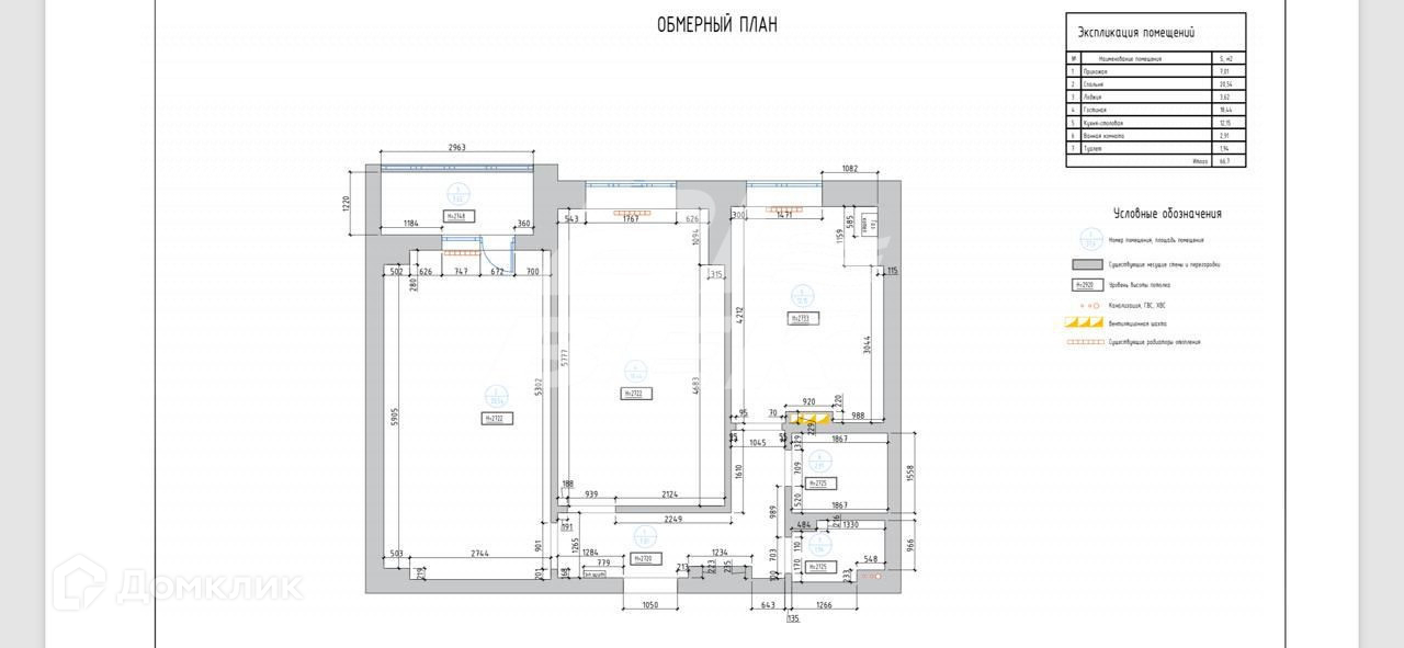 Общая площадь 63.7 м2