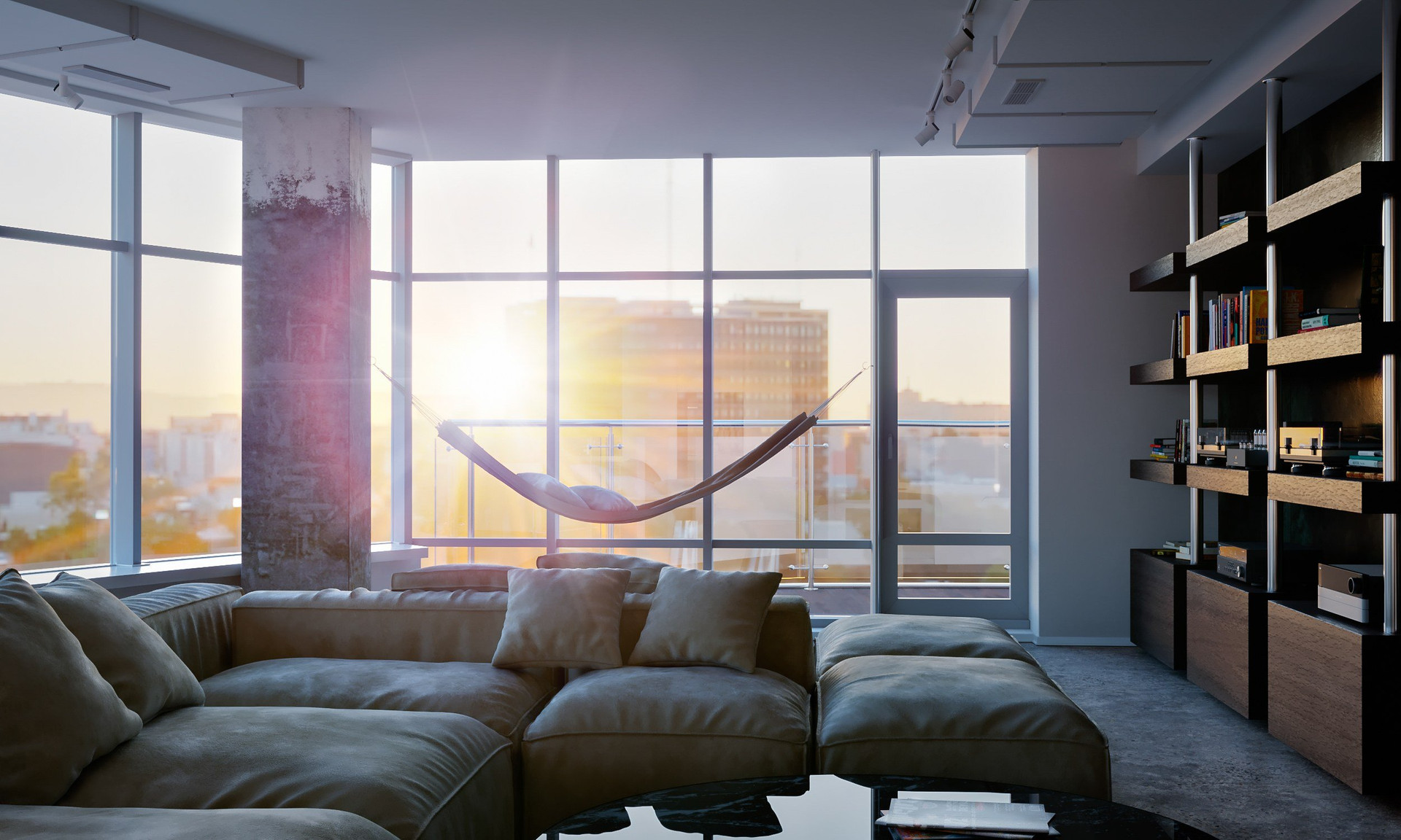 · Витражное остекление, что дает любоваться красотой города во всю высоту помещения.