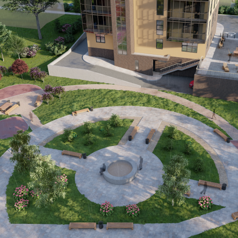 · Закрытая территория дома включает гостевую парковку, детскую площадку, спортивную площадку, расширенную зону отдыха для взрослых площадью 1000м².