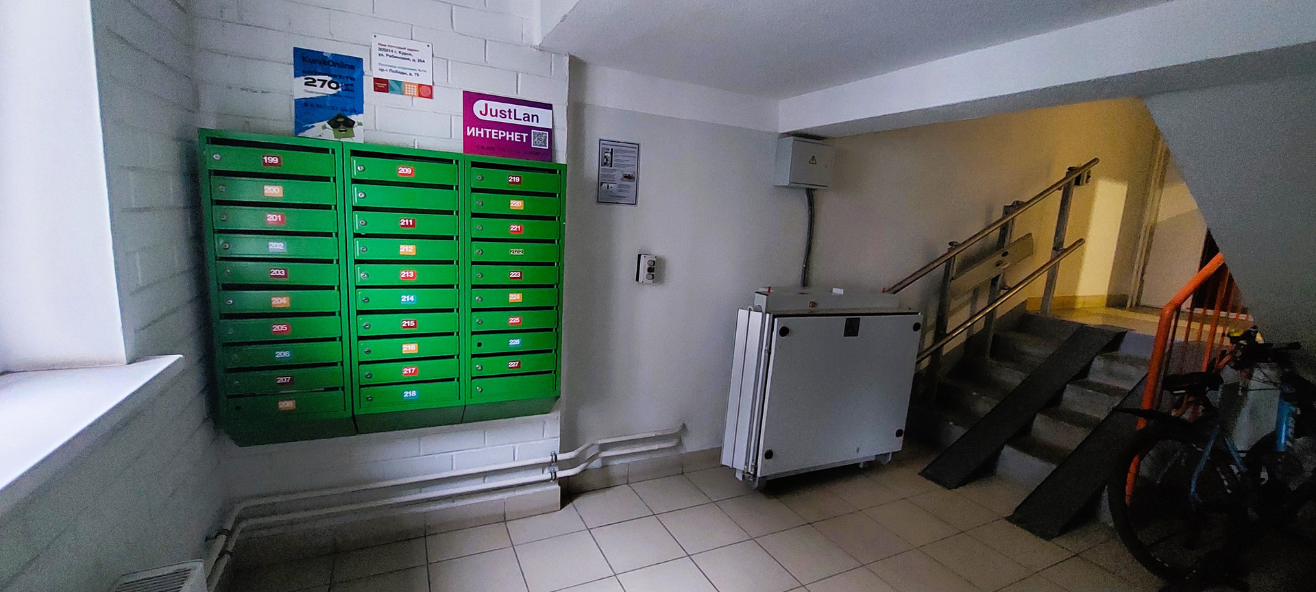 Дополнительное удобство - в подъезде имеется колясочная, где можно оставлять велосипеды, самокаты и другой инвентарь.