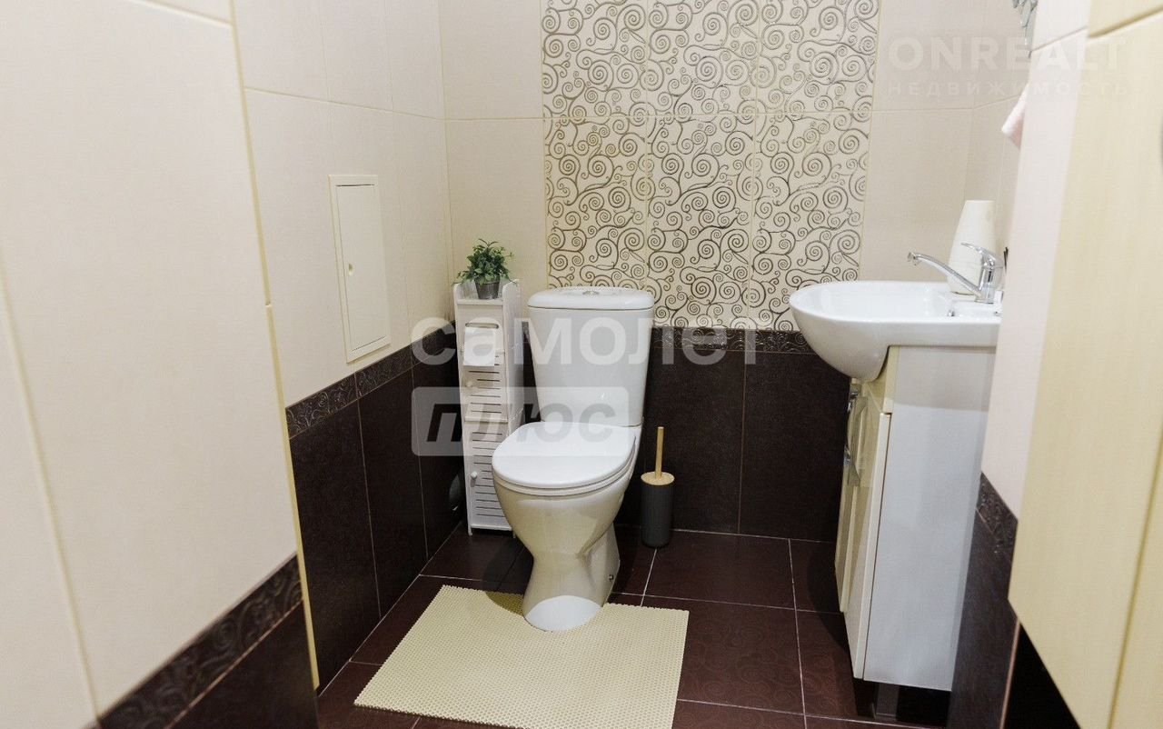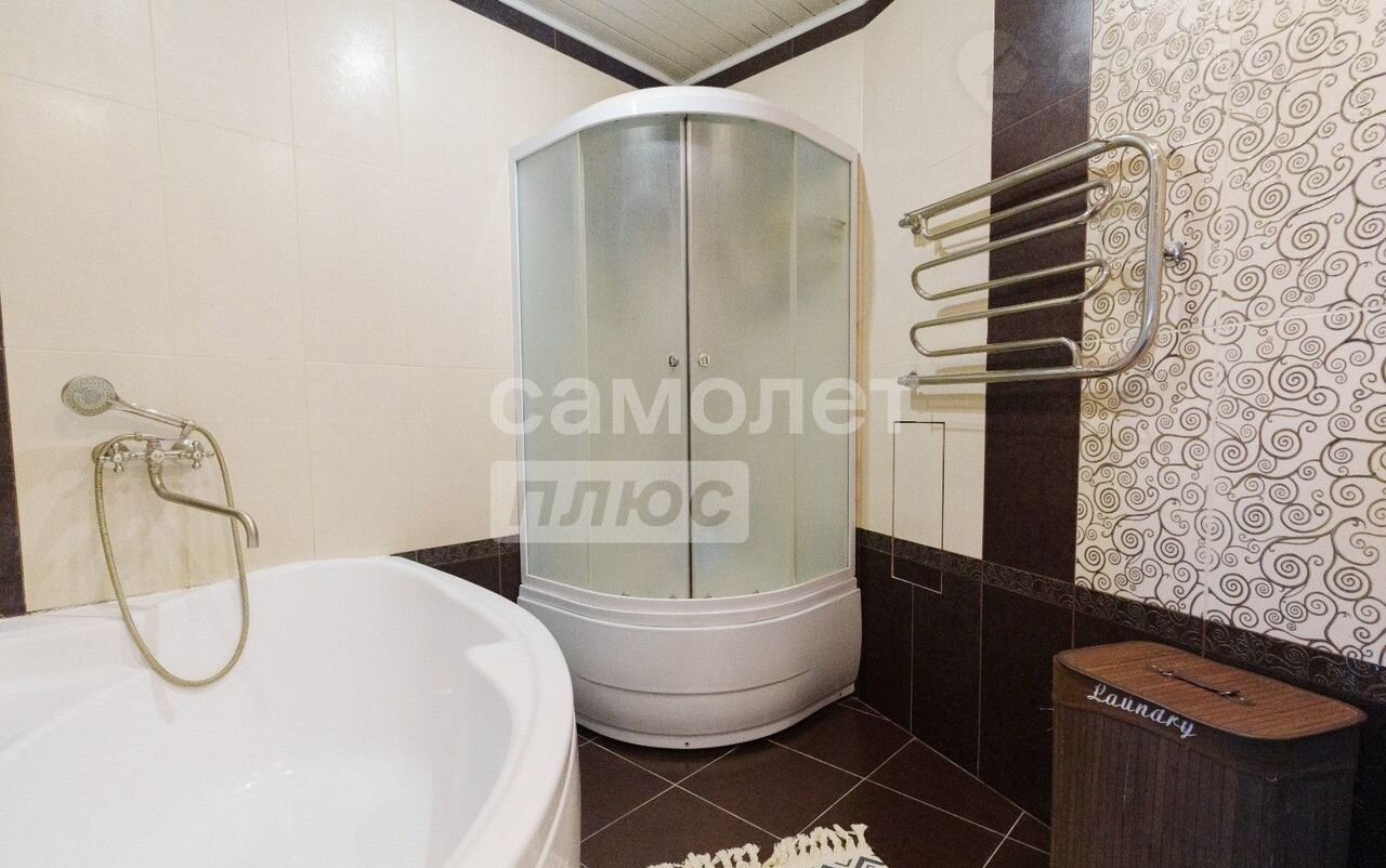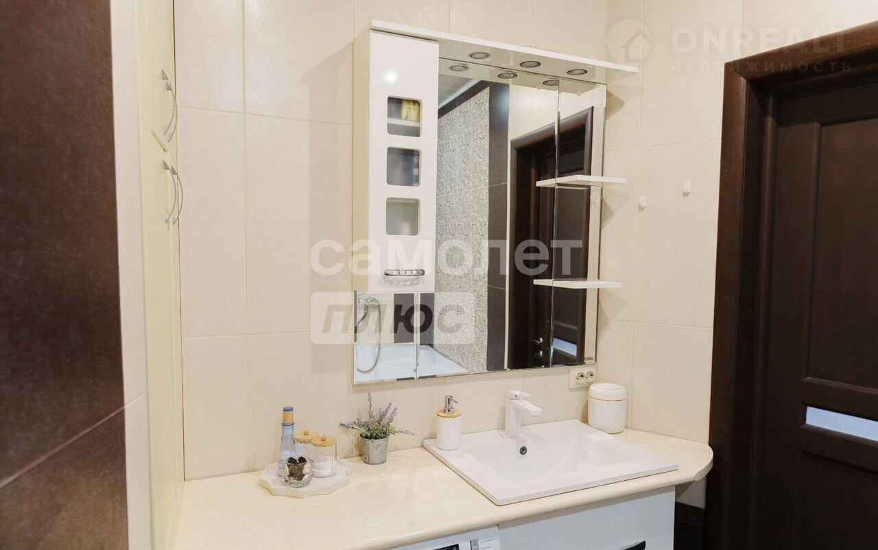 -В ванной красивый кафель,хорошая сантехника ,гарнитур в комплекте, большая ванная , душевая кабина ,натяжной потолок с точечными светильниками .