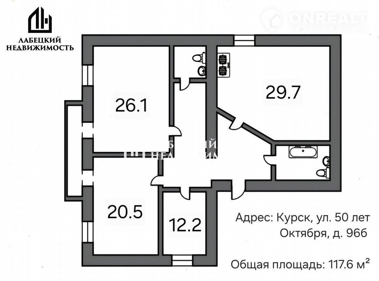 3-комнатная квартира, 117.6 м2, этаж 5 / 9, на продажу в Курске, улица 50 лет Октября, 96Б