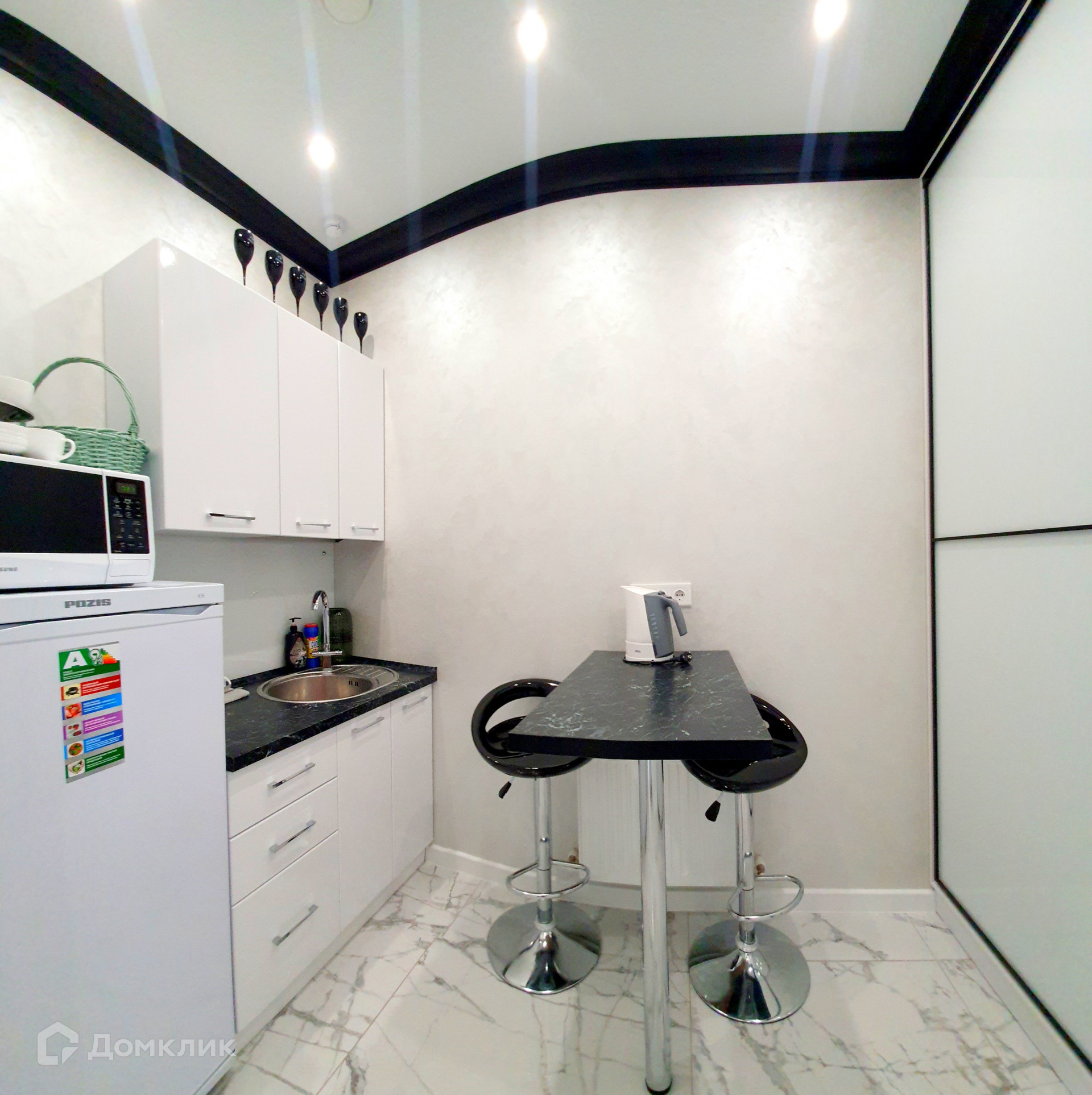 Все помещение оборудовано корпусной мебелью с элементами натурального камня от ведущих производителей.