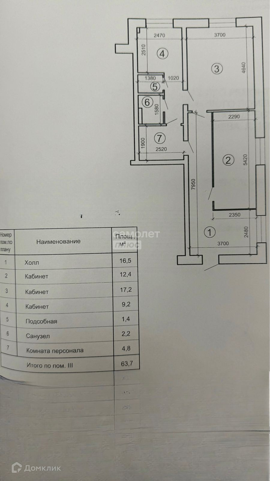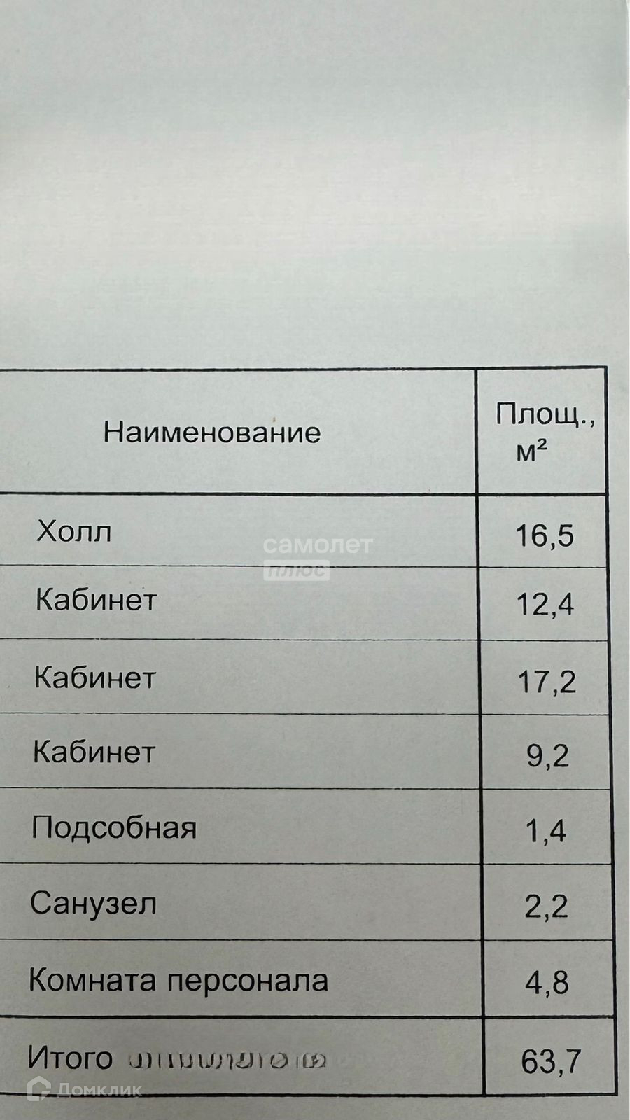 Общая площадь 63.7 м2
