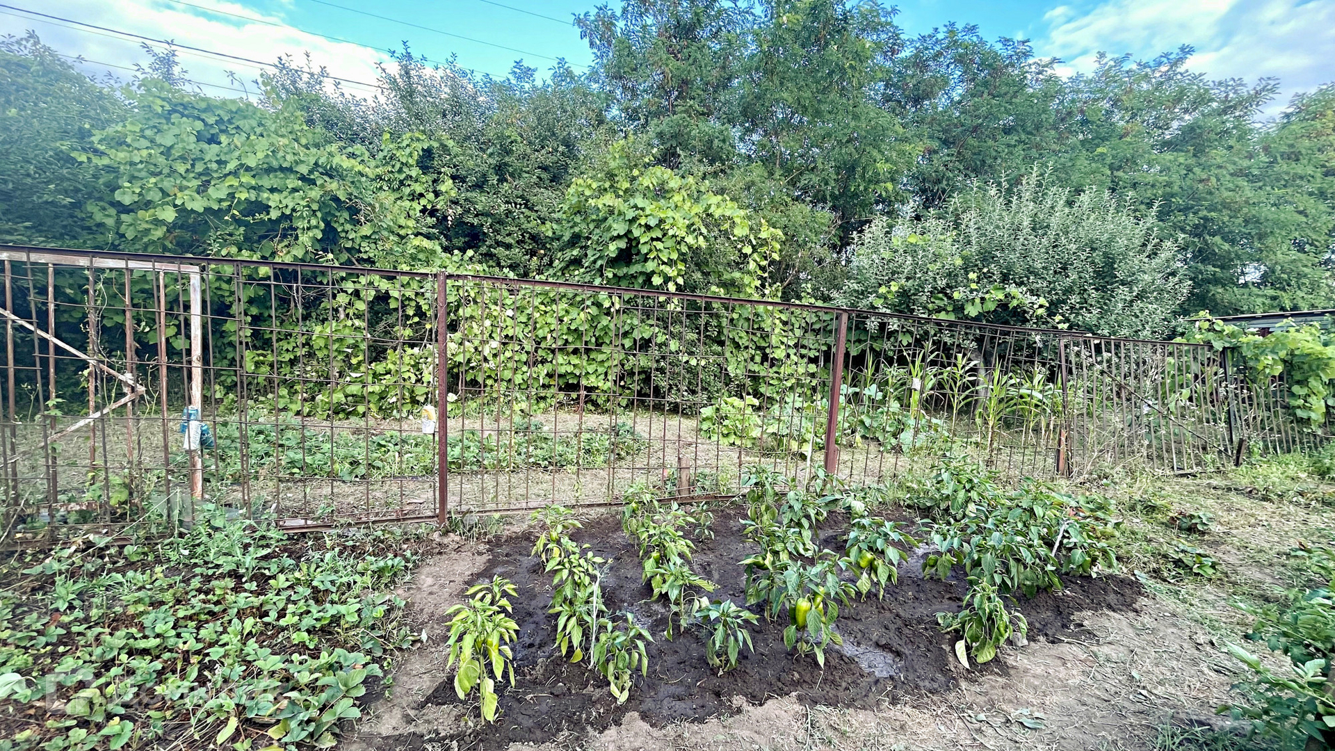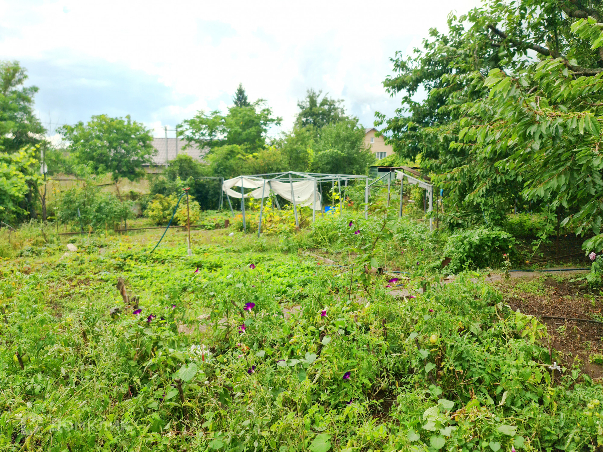 - на участке имеются РАЗНООБРАЗНЫЕ ЦЕННЫЕ ПОРОДЫ И СОРТА ПЛОДОВО-ЯГОДНЫХ КУЛЬТУР И НАСАЖДЕНИЙ (яблони, груши, абрикосы, сливы, персик, черешня, грецкий орех, клубника, ежевика, малина, смородина, сортовой виноград, крыжовник, огурцы, помидоры);