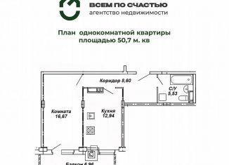 Однокомнатная квартира на продажу, 50.8 м2, 2-я Агрегатная улица, 57А