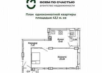 Однокомнатная квартира на продажу, 43.2 м2, 2-я Агрегатная улица, 57А