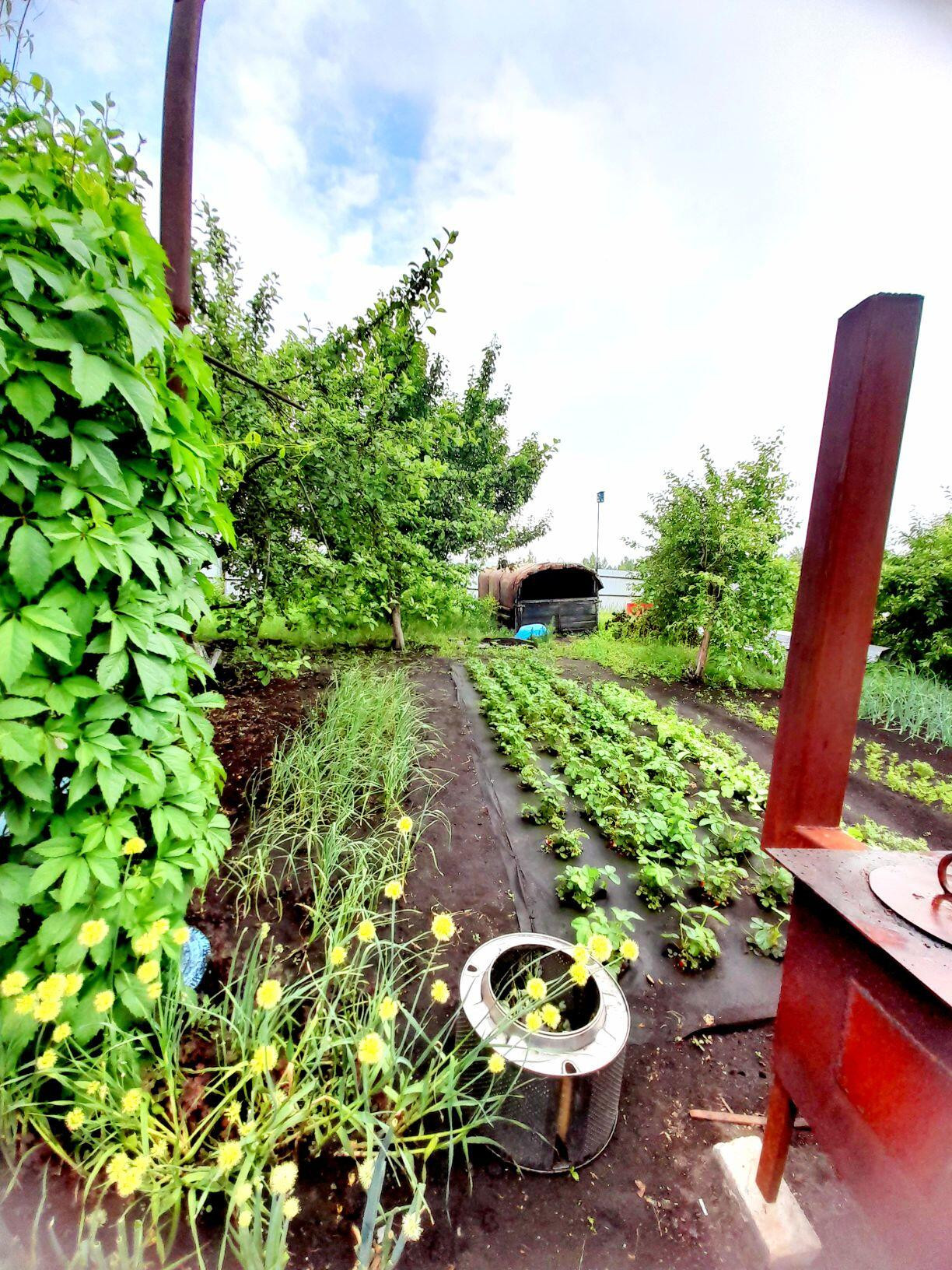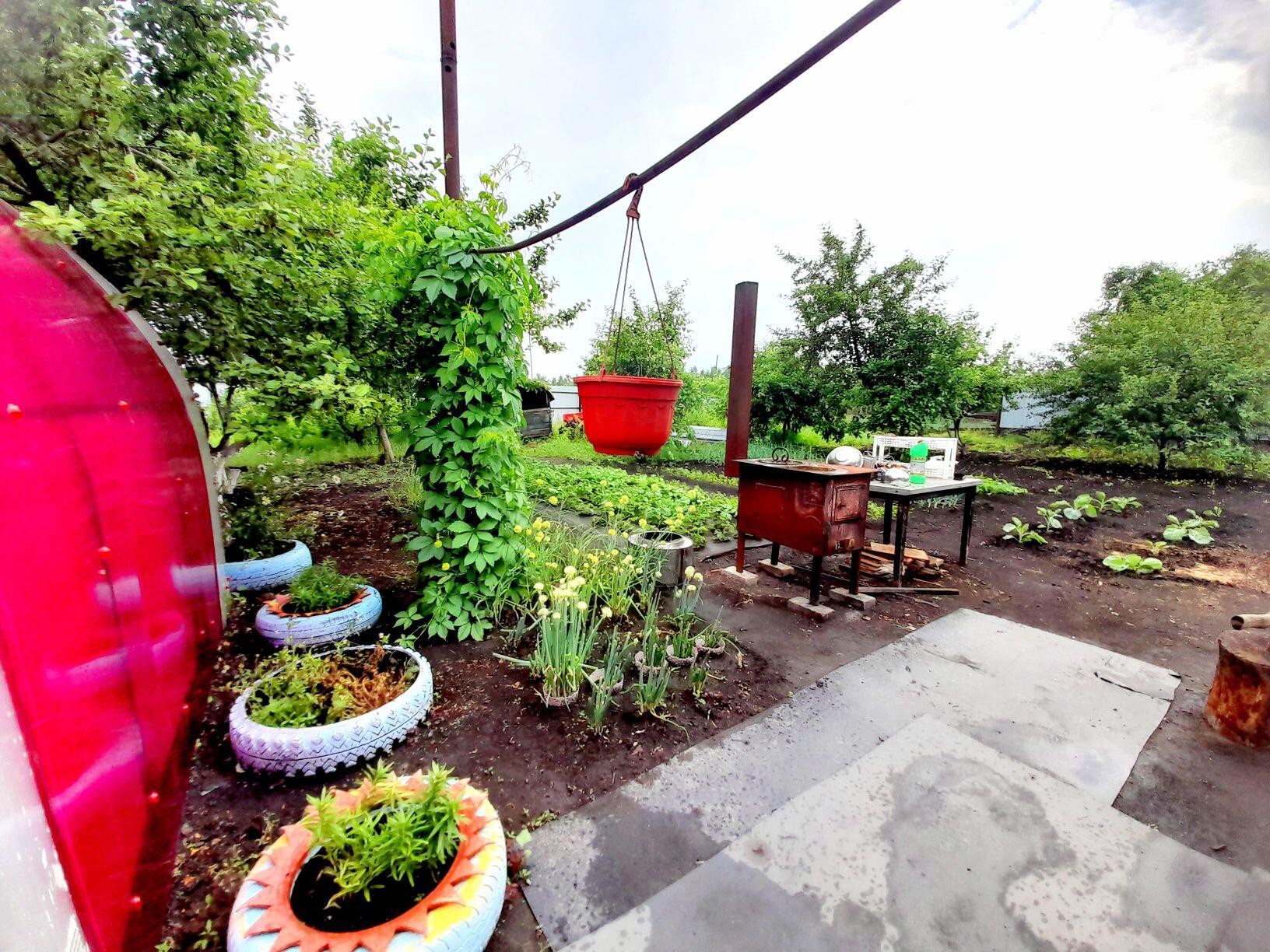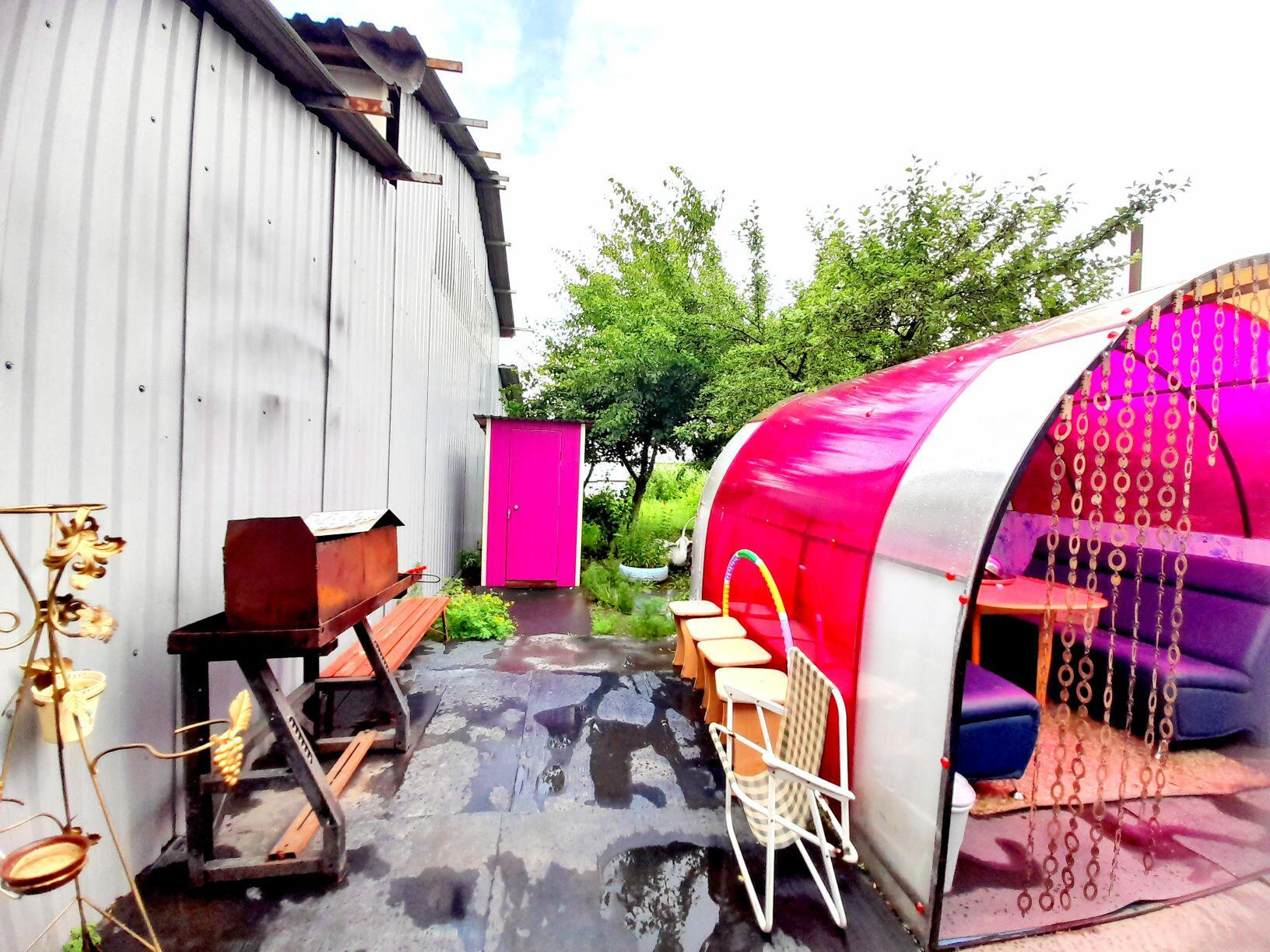 На территории есть баня (в стадии строительства), гараж, сарайки для складирования или держания скота, птицы, склад со стороны улицы, большой ангар, склад со стороны ангара, большой гараж. Во дворе оборудовано место для отдыха, установлена беседка, мангал, уличный сортир, ухоженный земельный участок с плодородным садом в котором есть яблоня, груша, крыжовник, ирга, слива. Рядом хорошие и доброжелательные соседи.