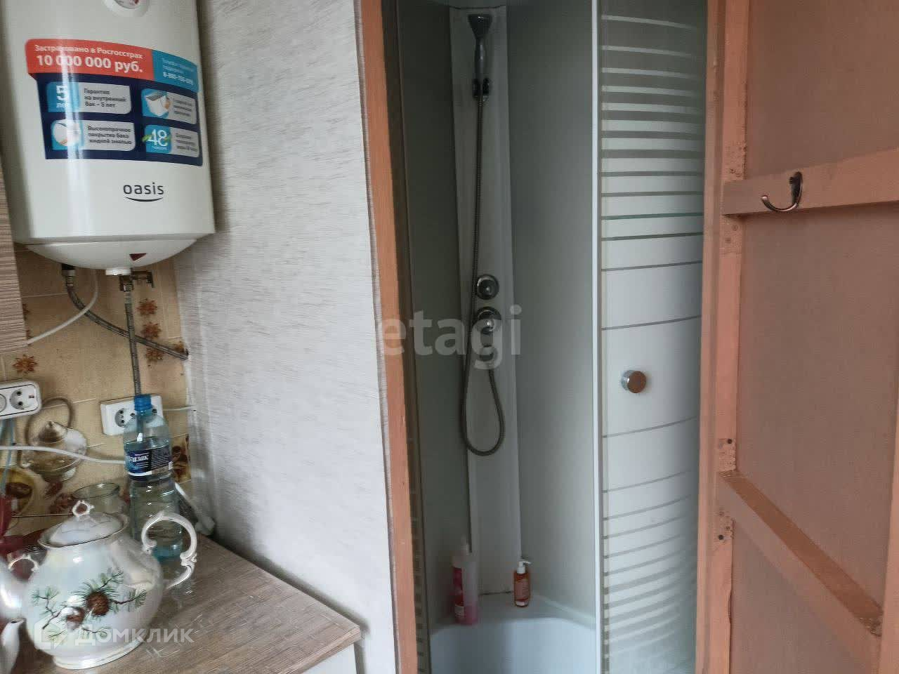 Душевая кабина, водонагреватель на 30л, туалет в доме.