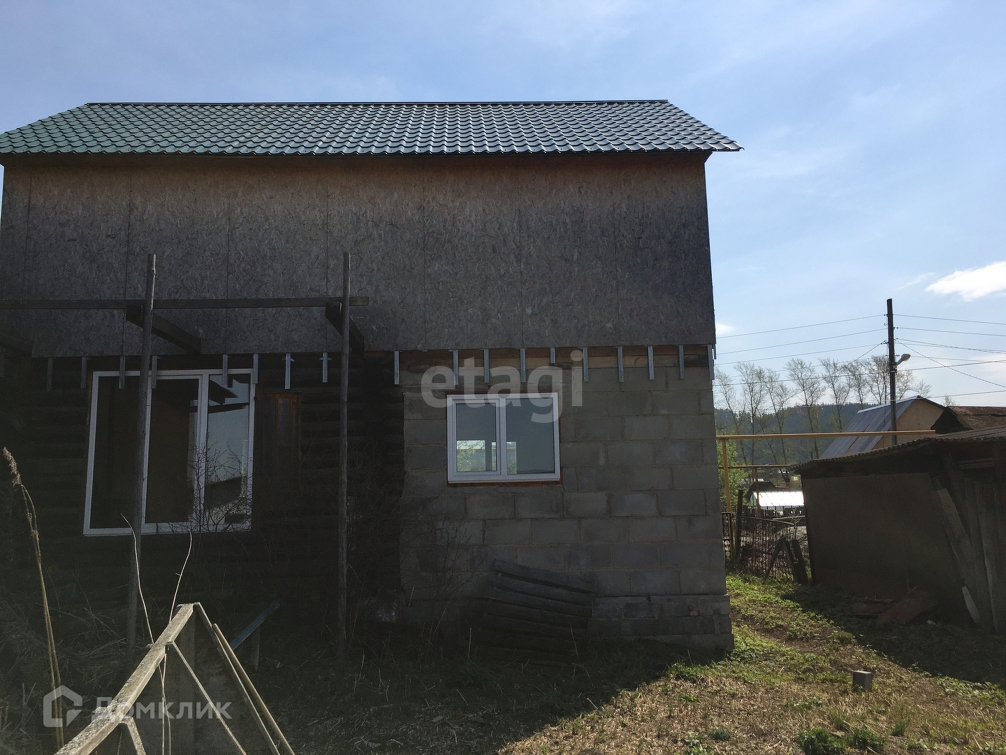 К дому из бревна сделан пристрой из шлакоблока. Два этажа. Это 140 кв.м. общая.