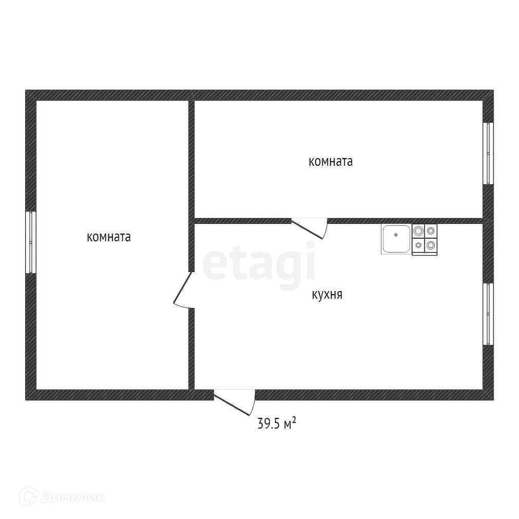 Общая площадь 39.5 м2