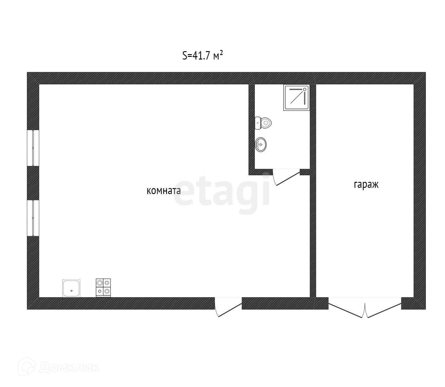 Общая площадь 41.7 м2