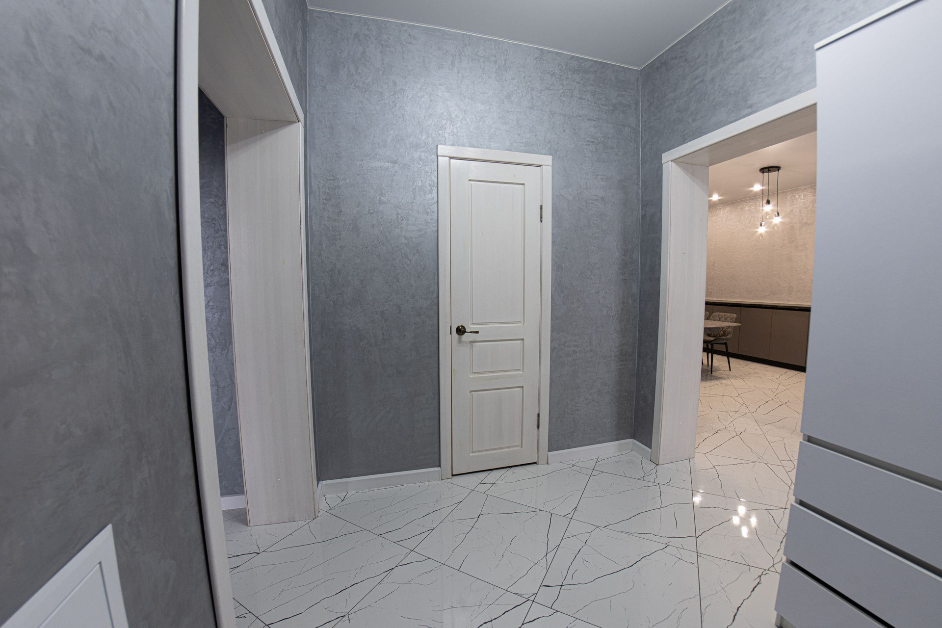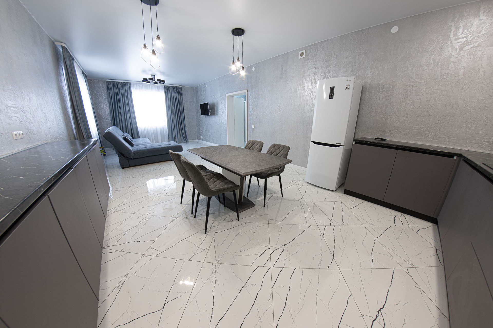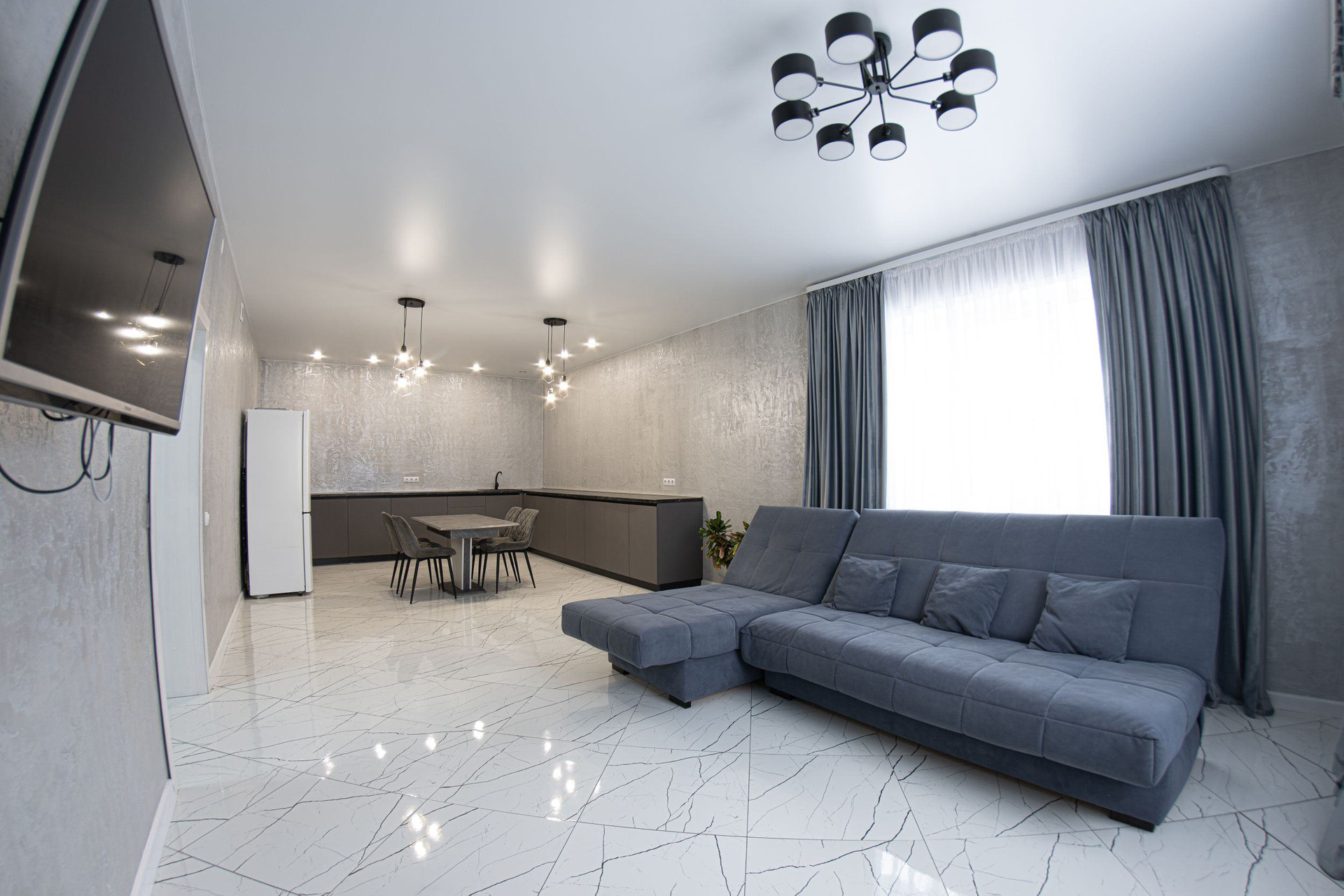 Полы из керамогранита, стены декоративная штукатурка и крашенные стены.Потолки натяжные.Продуманная система электрики в доме, предусмотрены розетки вплоть до места для ёлки и гирлянды на окна.