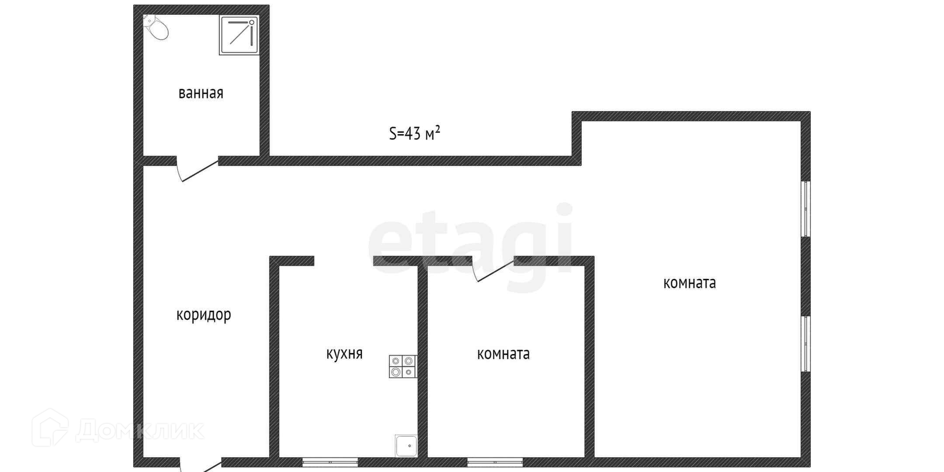 Общая площадь 43.1 м2
