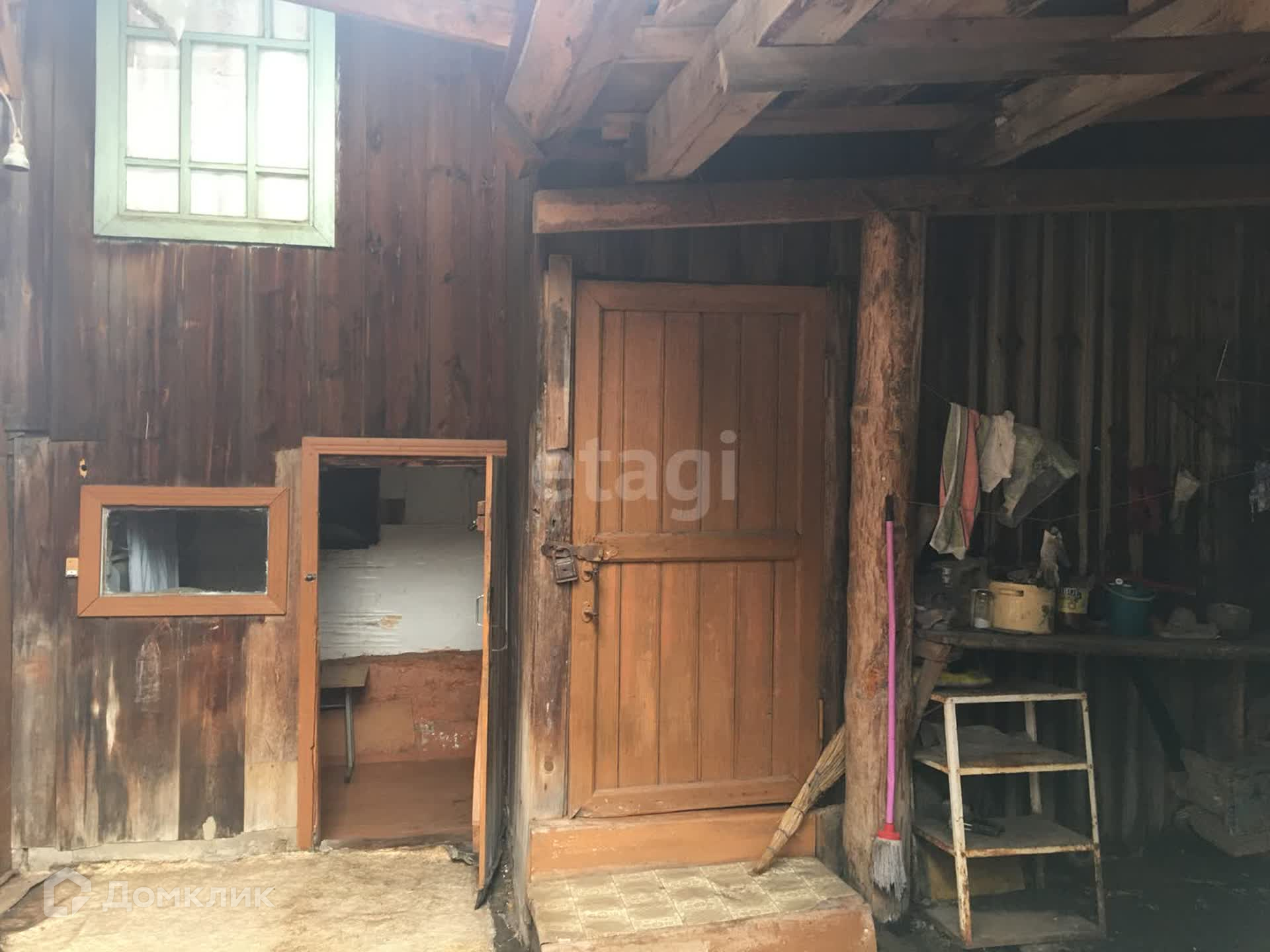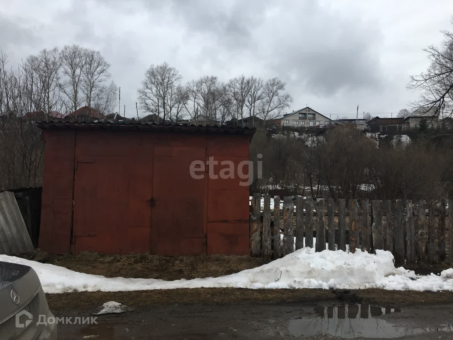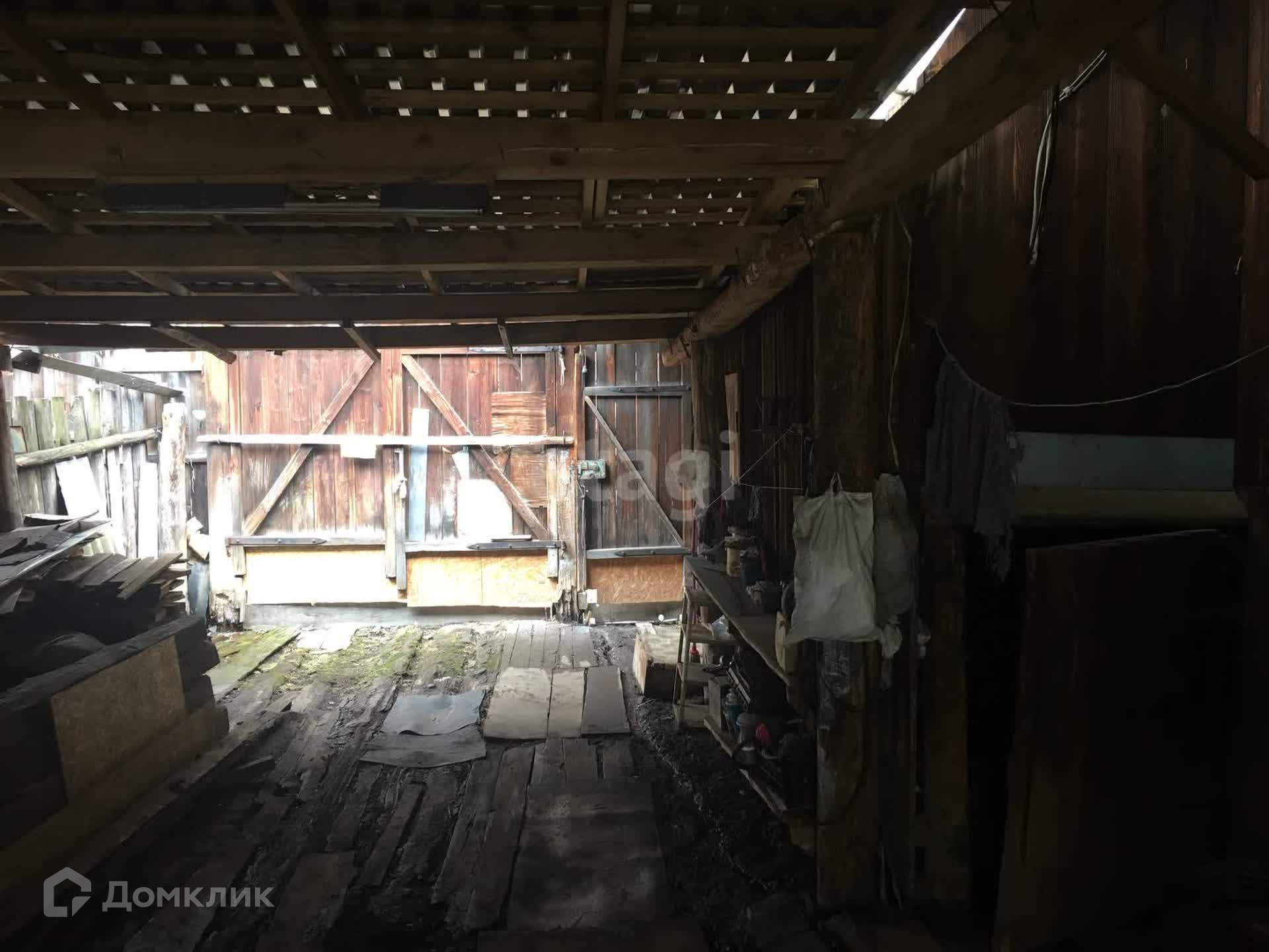 Двор закрыт проф настилом. Есть стайки. Гараж железный.