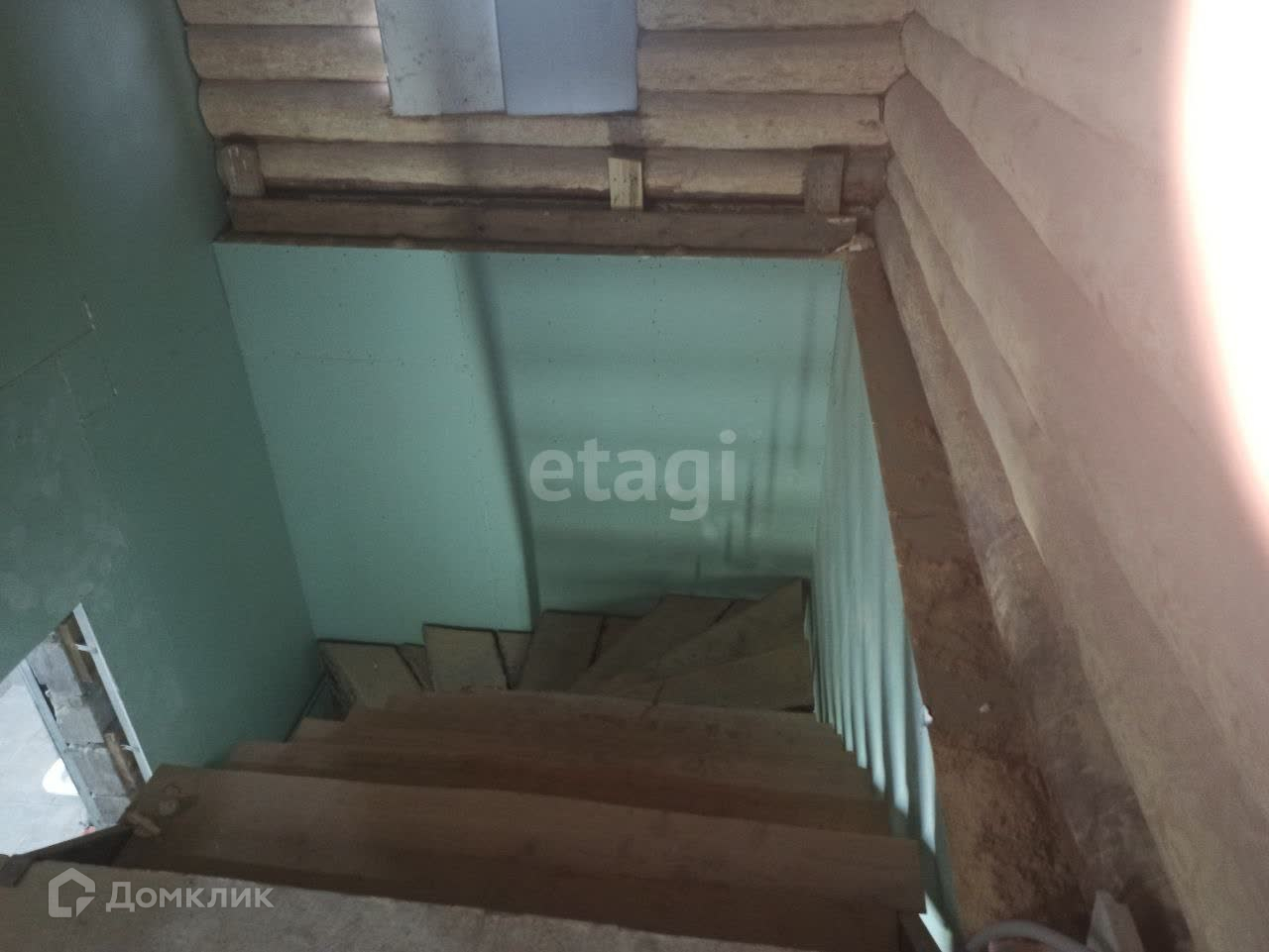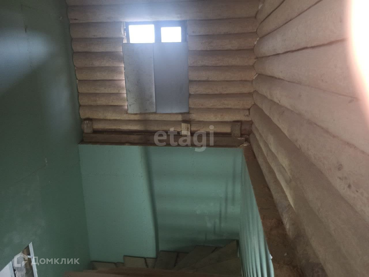 Второй этаж стены ошкурены, покрыты иней, лак