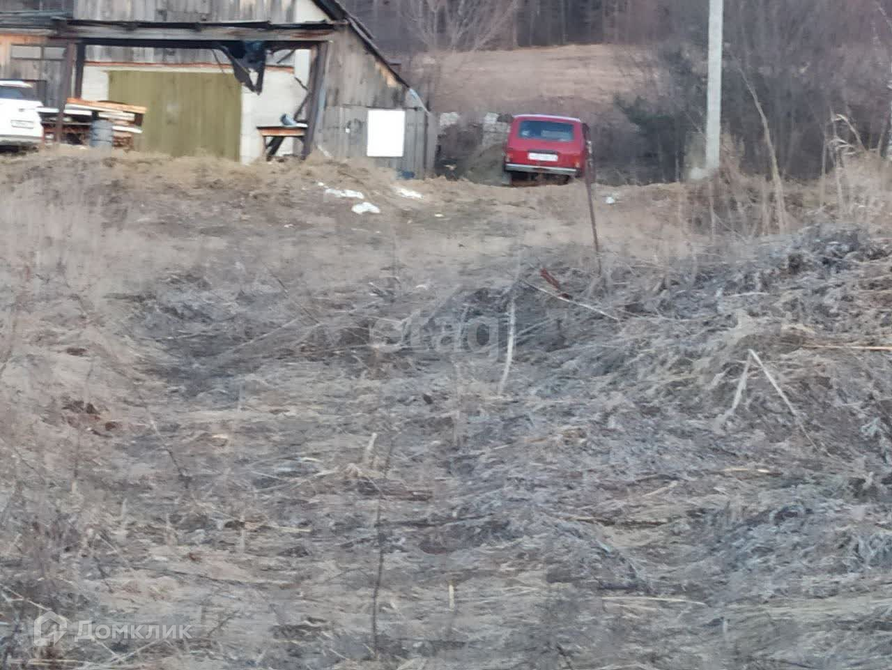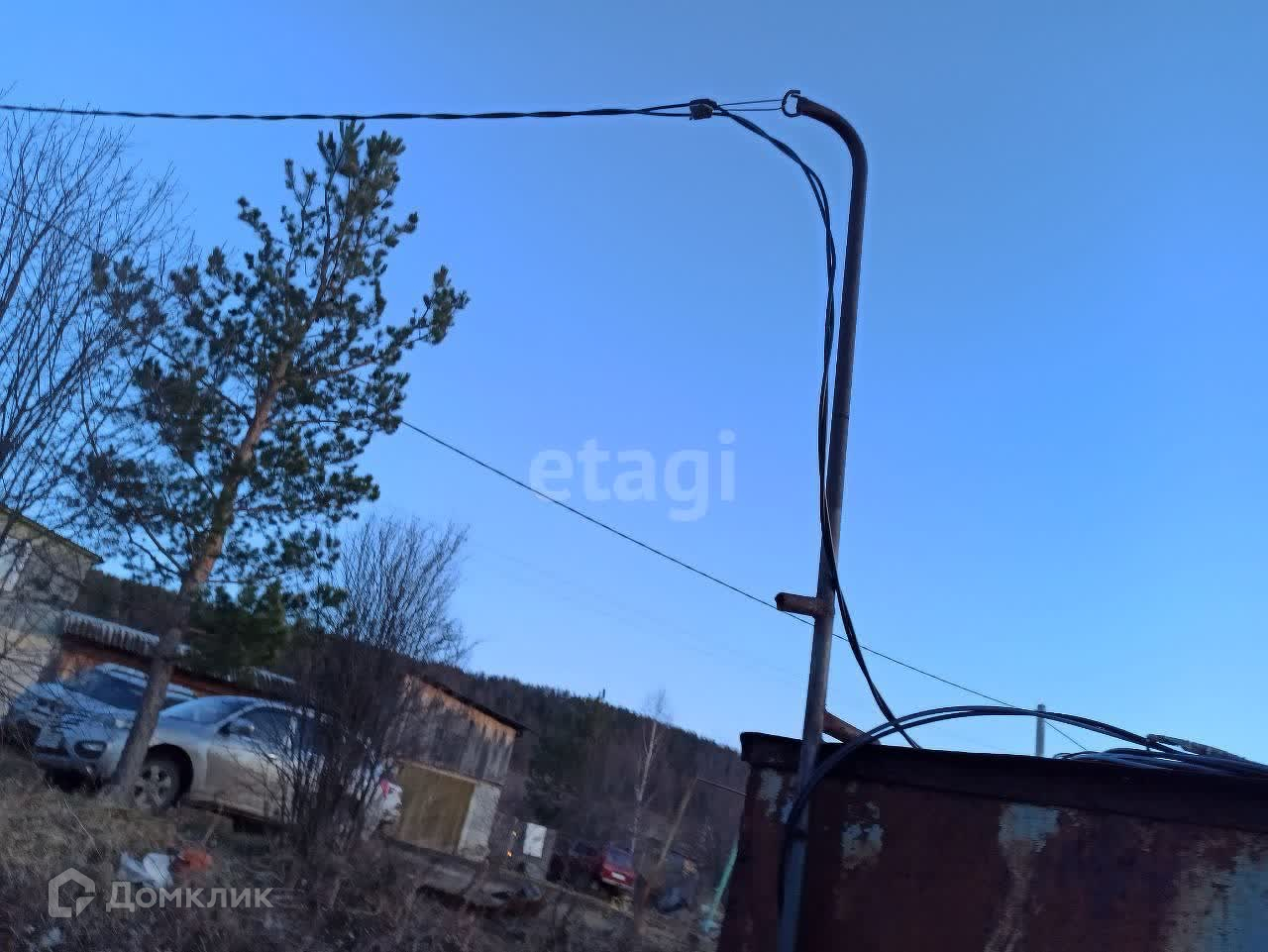 На участке находится гараж, в который подведено электричество. На фото ориентируйтесь по столбикам.