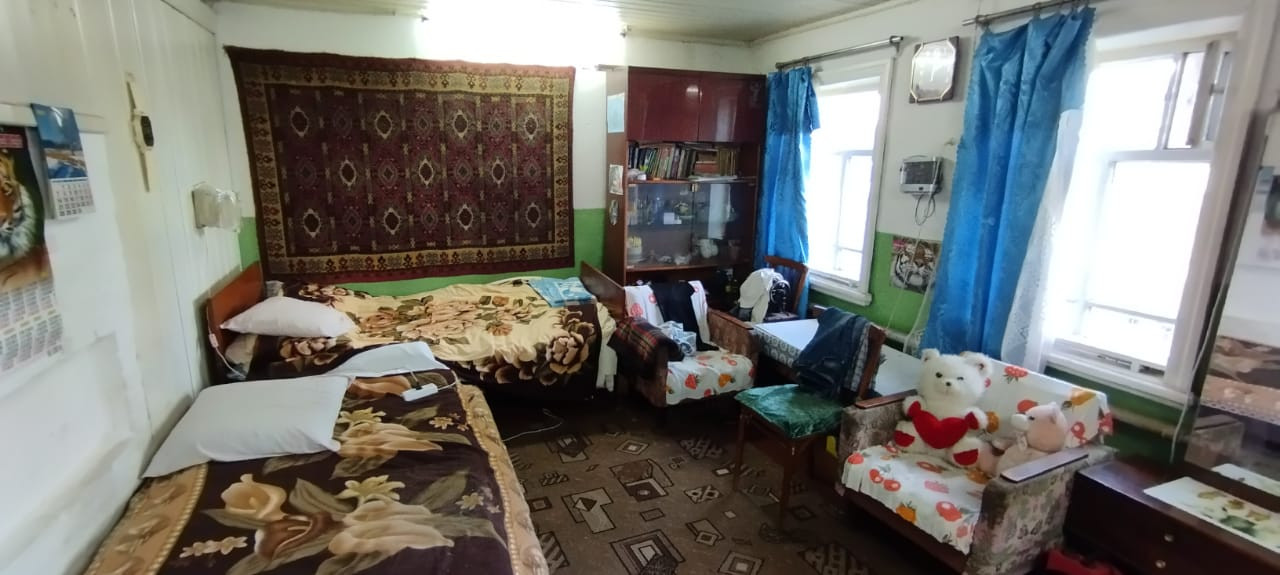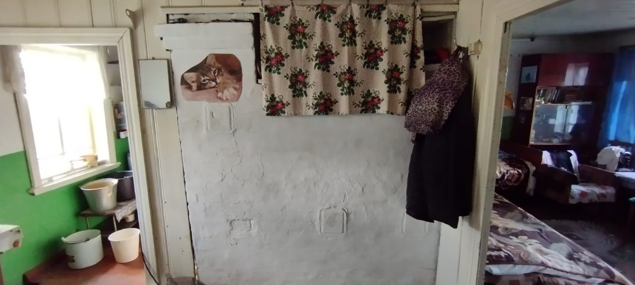 Продаю квартиру в доме на двух хозяев. Из коммуникаций присутствует отопление, как газовое, так и печное, водопровод отсутствует, но подведена скважина, канализация отсутствует, туалет во дворе. Есть земельный участок с баней и огородом общей площадью около 1180 квадратных метров.
