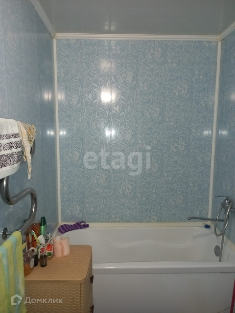 Пол выравнен фанерой. В комнате натяжной потолок, в кухне на потолке пластиковые панели. На кухне установлена новая газовая колонка. Санузел совмещенный. Трубы поменяны на пластиковые, на горячую и холодную воду установлены счетчики. Сантехника новая. Стены и потолок в санузле обшиты пластиковыми панелями.