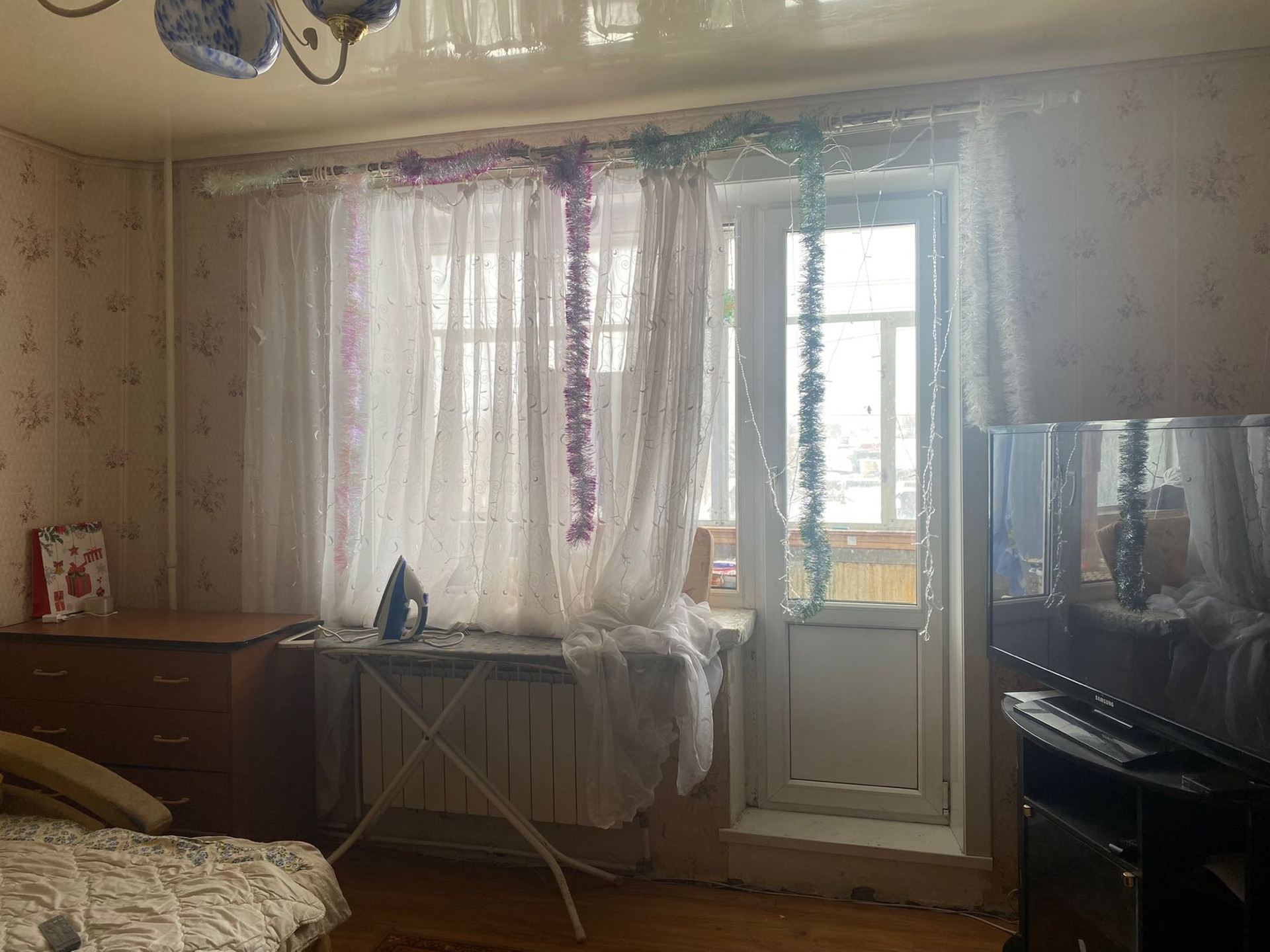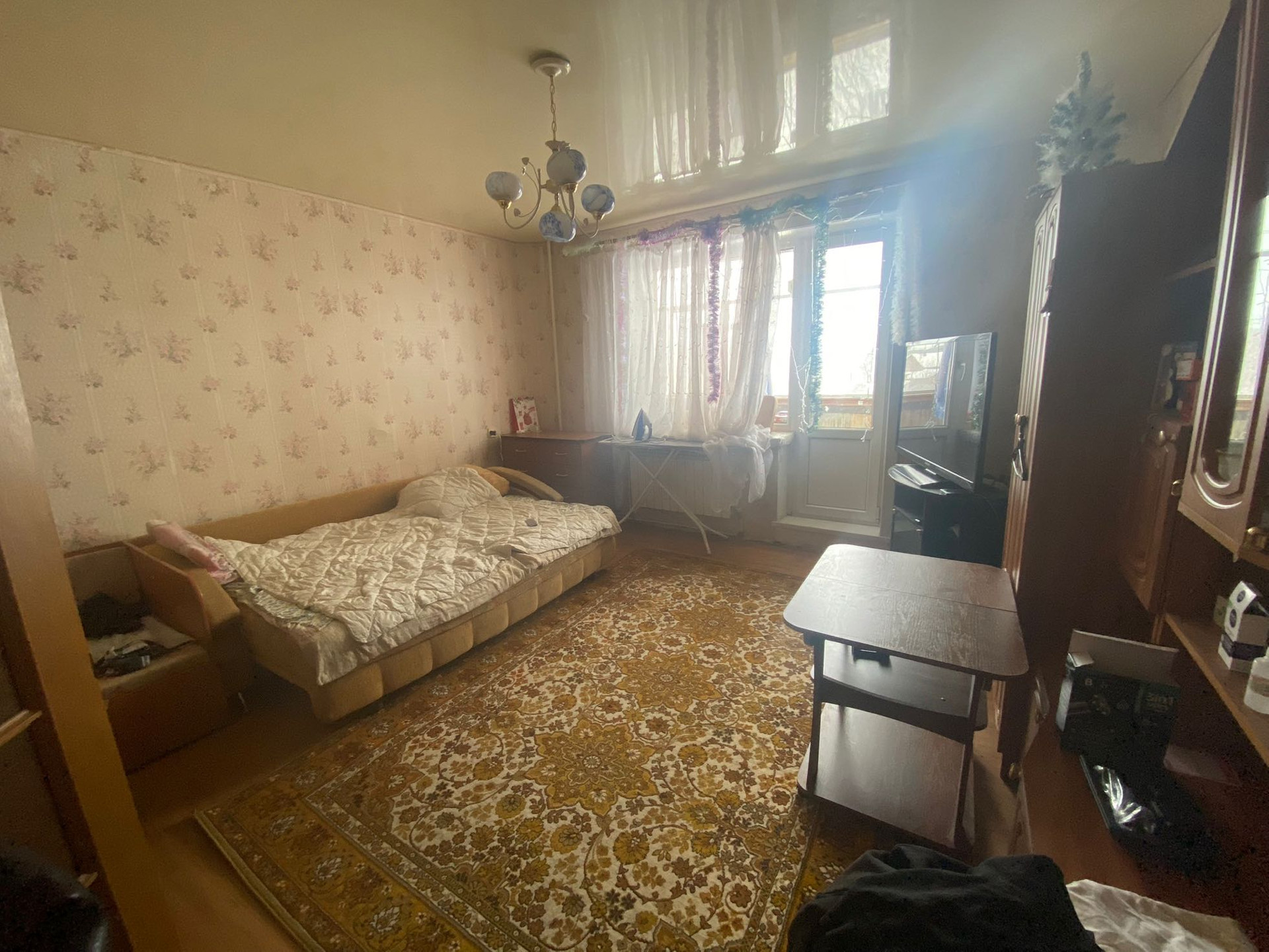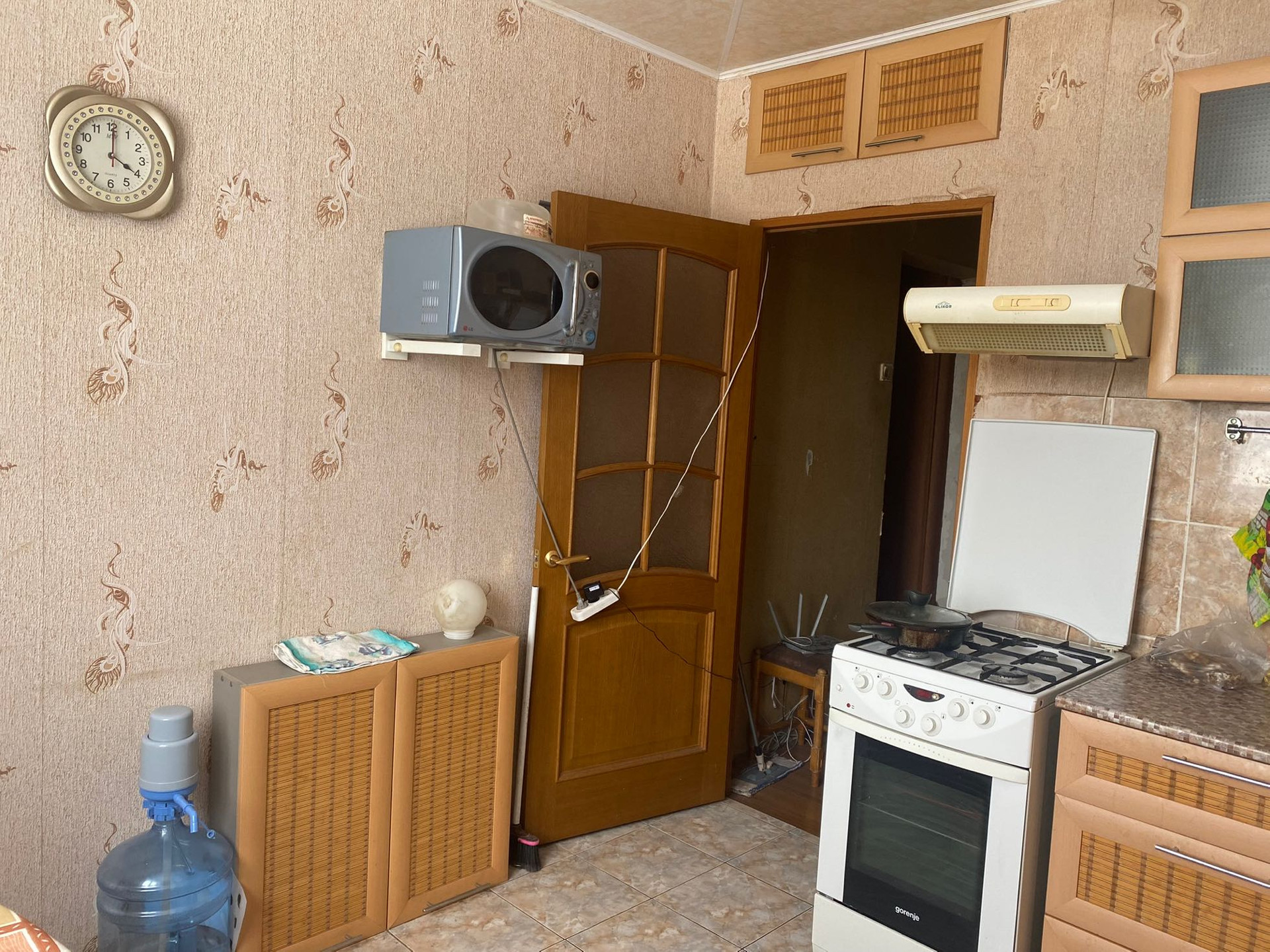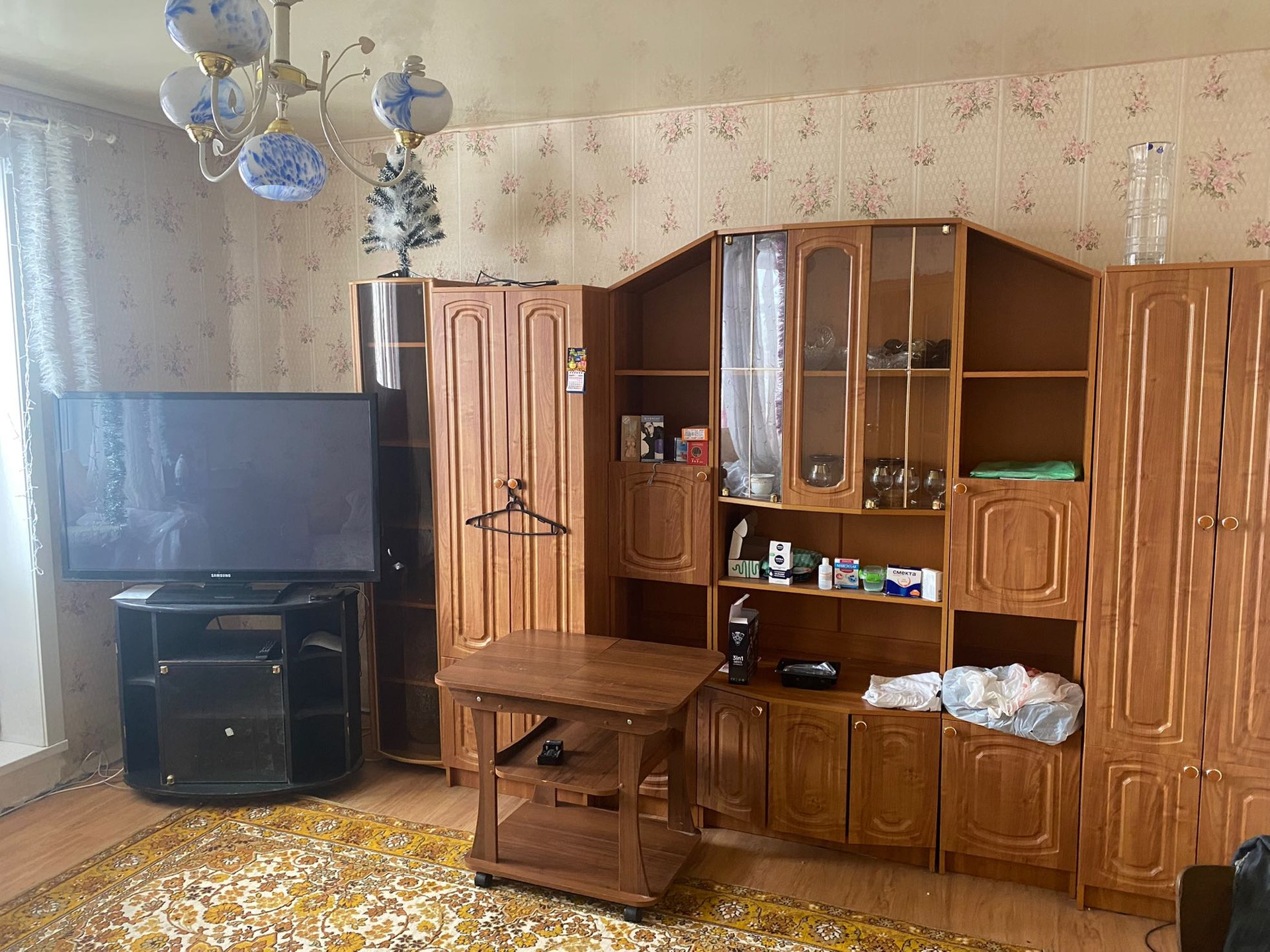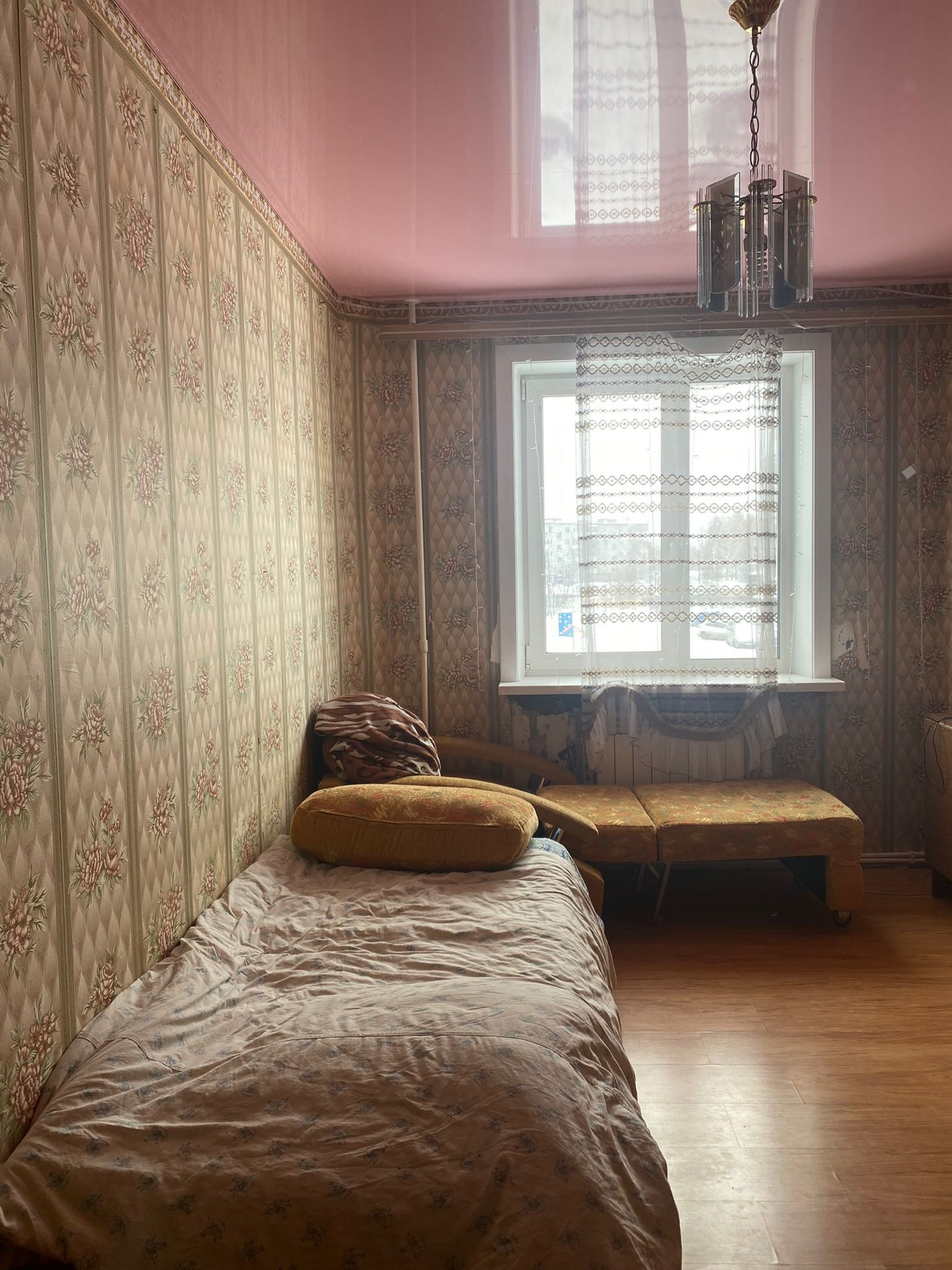 Квартира с минимальным ремонтом: шкафы,межкомнатные двери - в хорошем состоянии. На полах - ламинат, на кухне,в ванной и туалете - плитка. Потолки натяжные