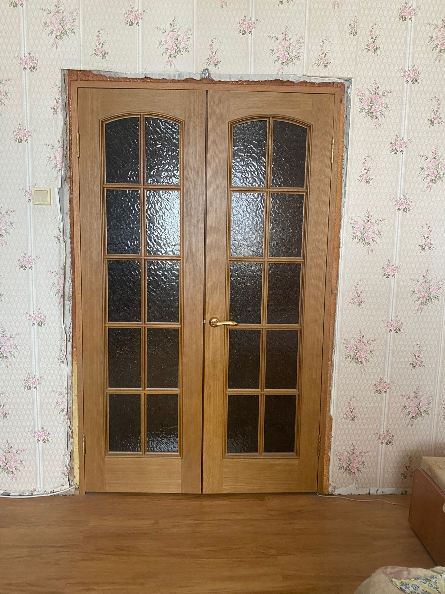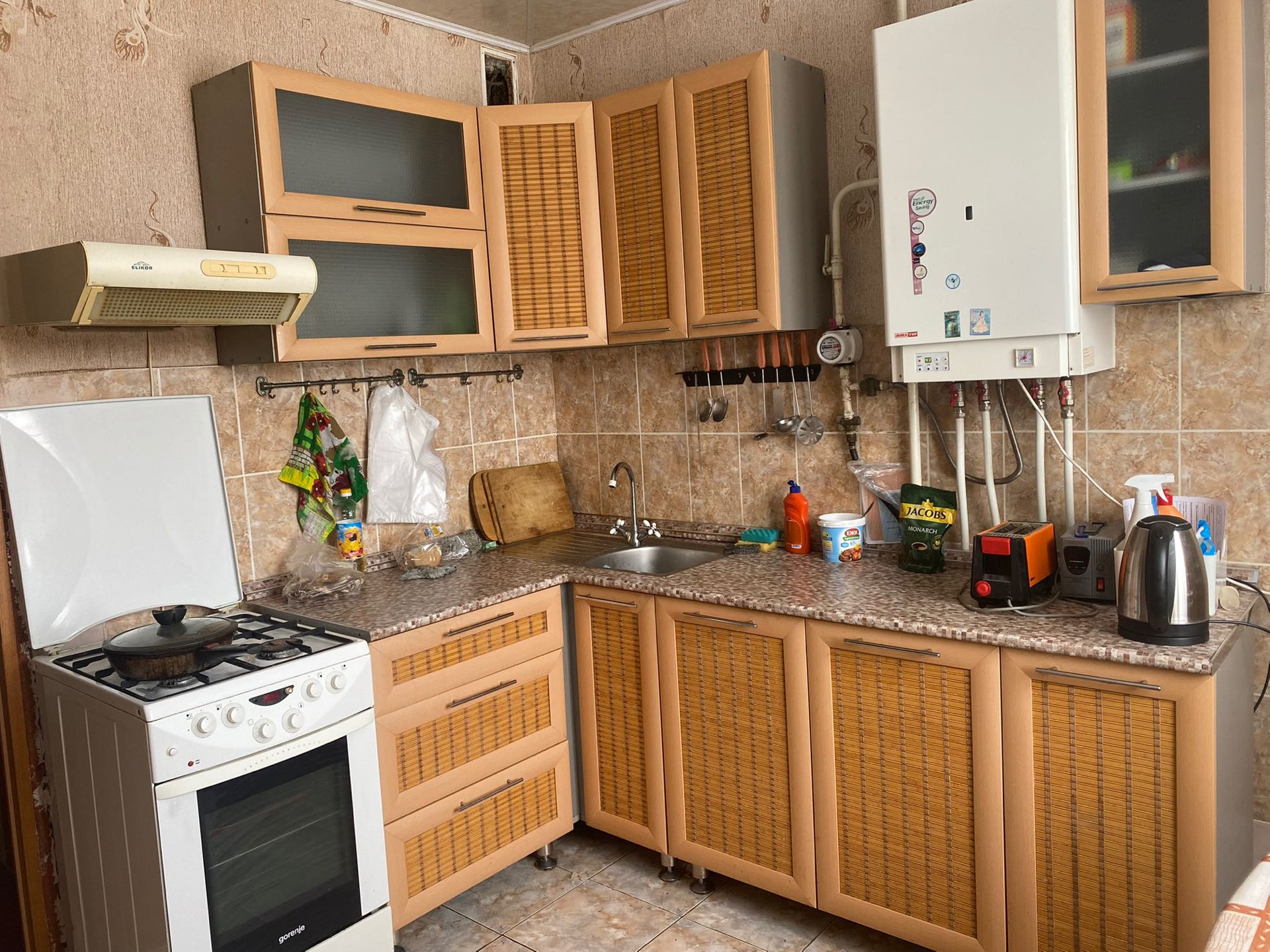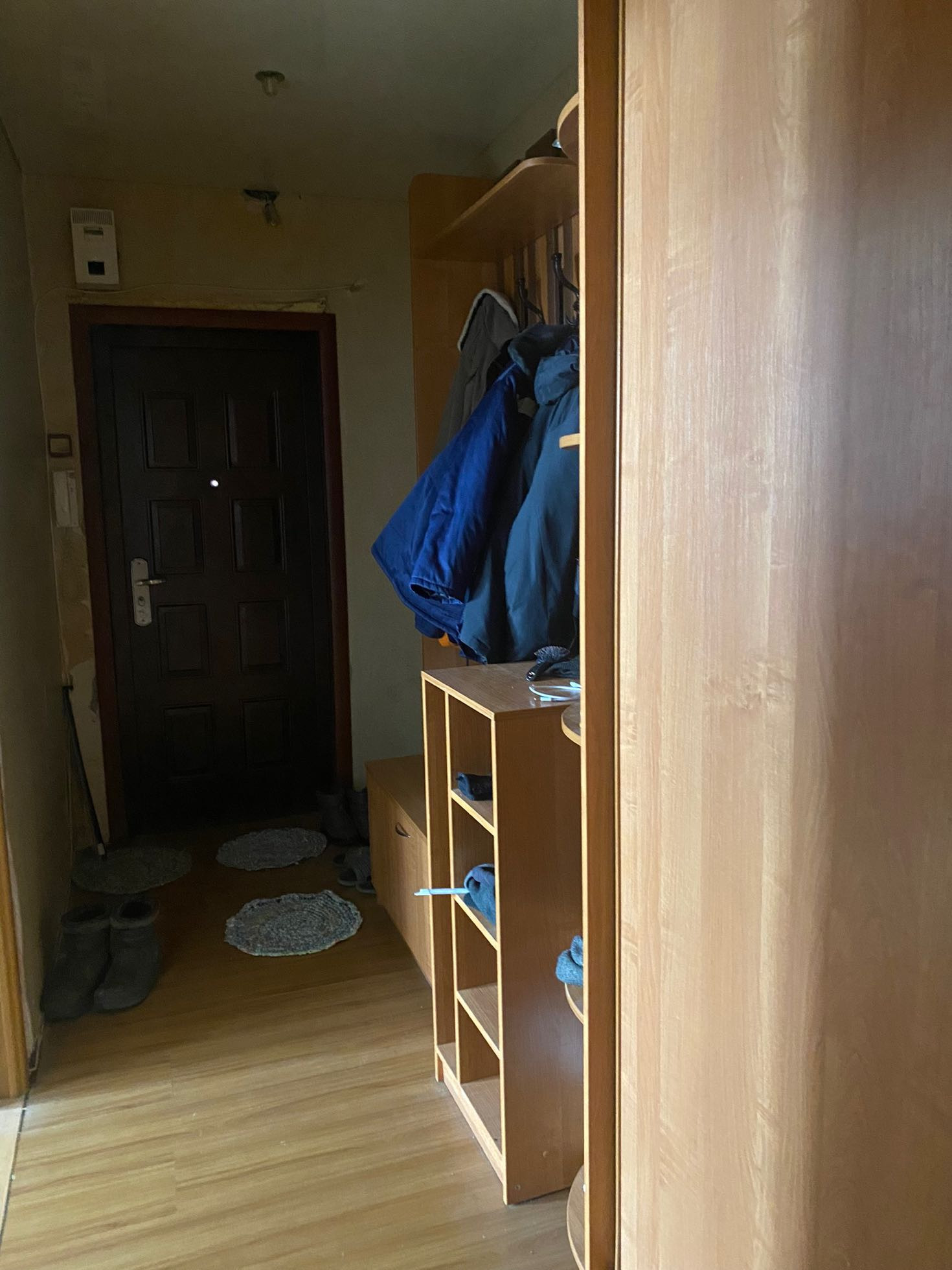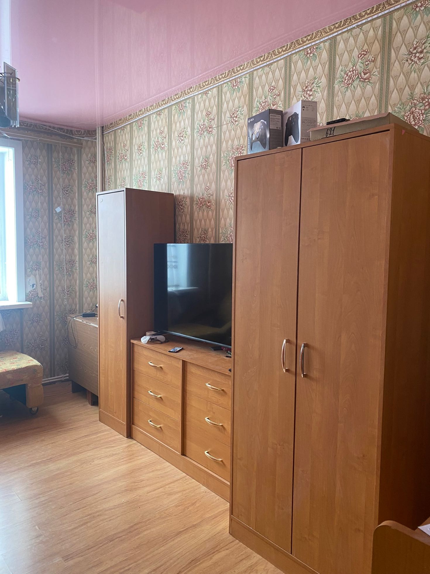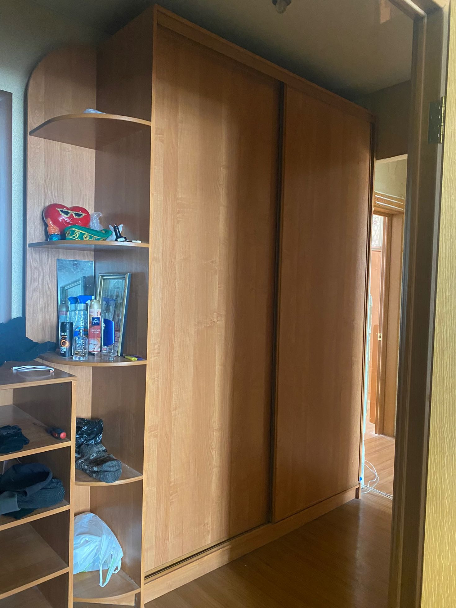 Квартира с минимальным ремонтом: шкафы,межкомнатные двери - в хорошем состоянии. На полах - ламинат, на кухне,в ванной и туалете - плитка. Потолки натяжные